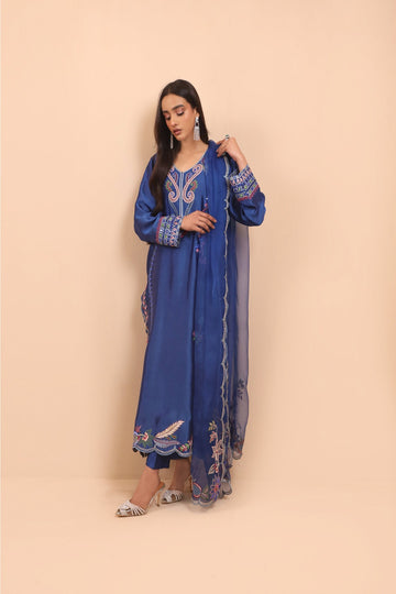 Details about the product: 3 Piece Pure Sheesha silk shirt with pants Multi Resham embroidery...