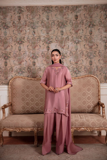 Details about the product: A 3pc set on sheesha Silk, embellished in pearls, sequins and...