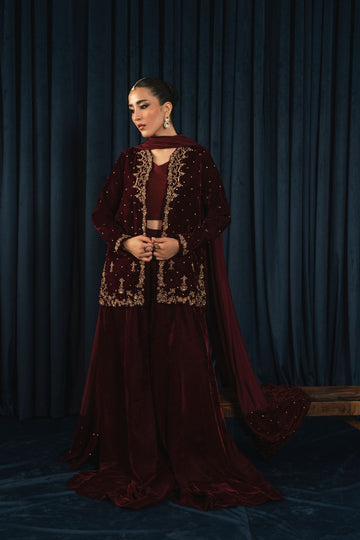 Details about the product: This velvet jacket is beautifully embellished with intricate kora, dabka, sequins,...