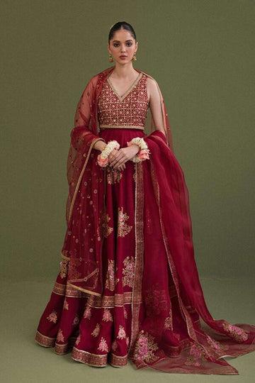 Details about the product: Deep burgundy layered peshwas with hand detailing. Paired with a heavily...