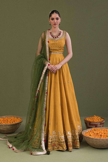 Details about the product: Block printed rawsilk lehnga handworked with gota, crystals and sequins paired...