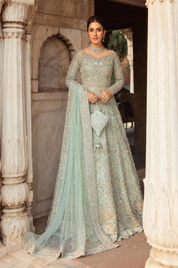 Product description: An ethereal and feminine couture look, Jenan consists of a mint hued net...
