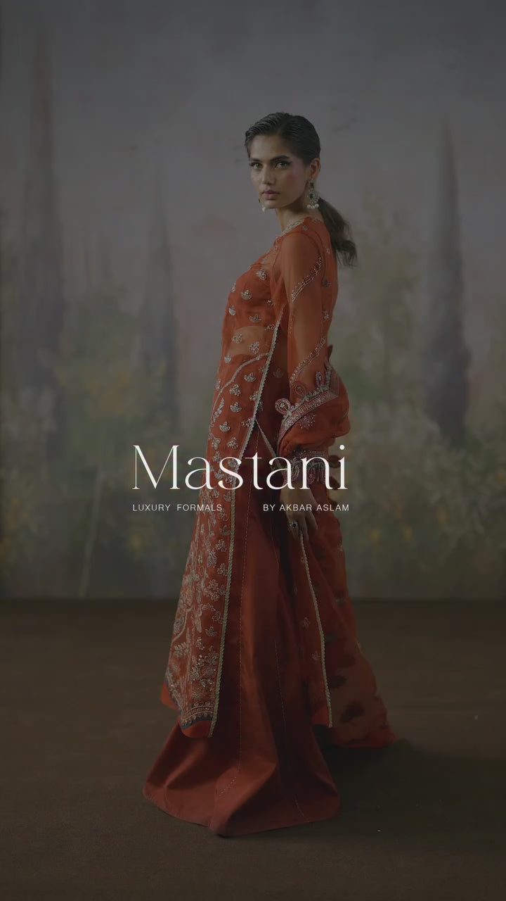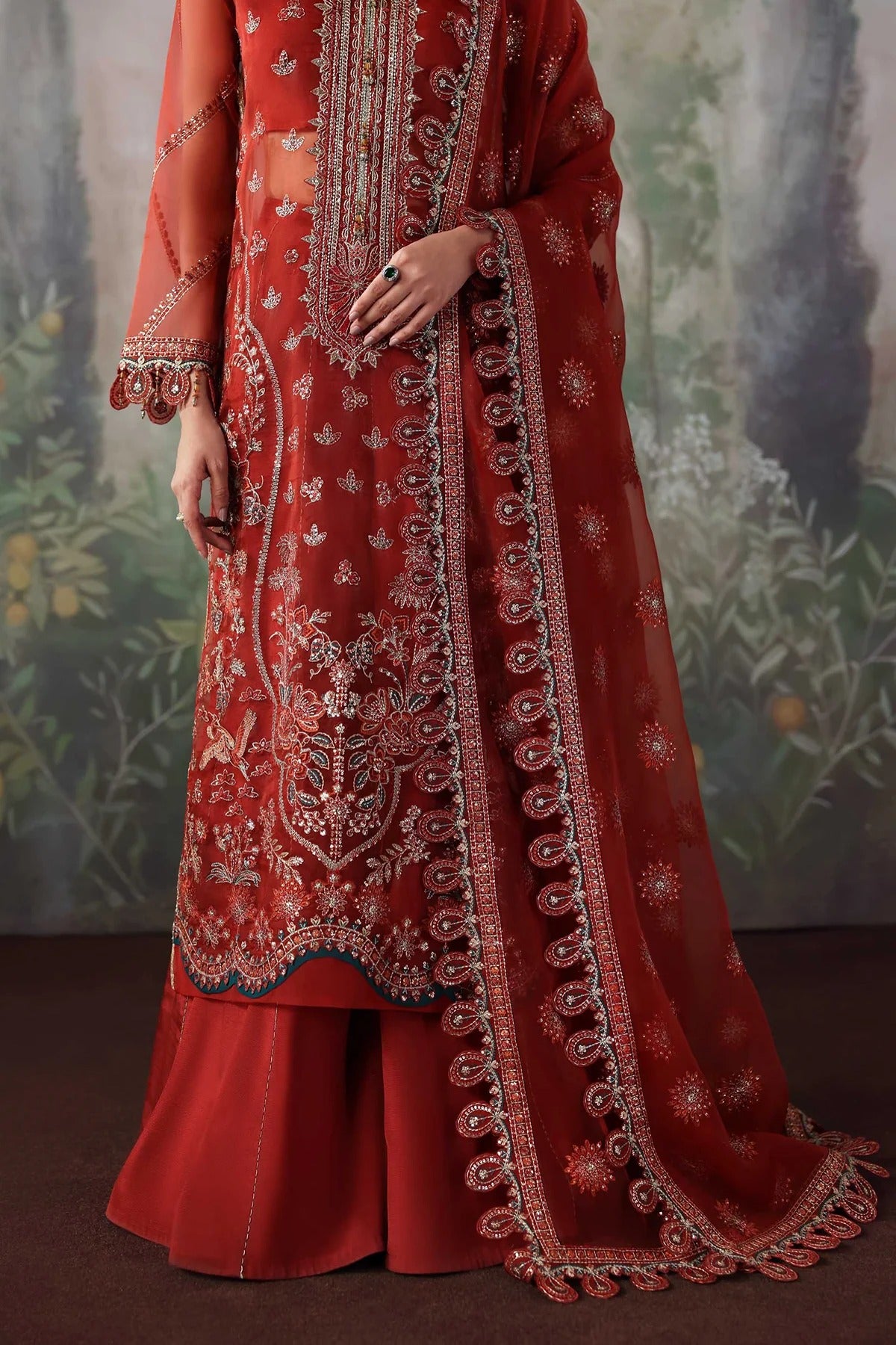 A bold red outfit drenched in exquisite embroidery, radiating power and elegance. Its rich tone paired with delicate details makes it the ultimate festive statement. Perfect for weddings and grand soirées where presence matters.