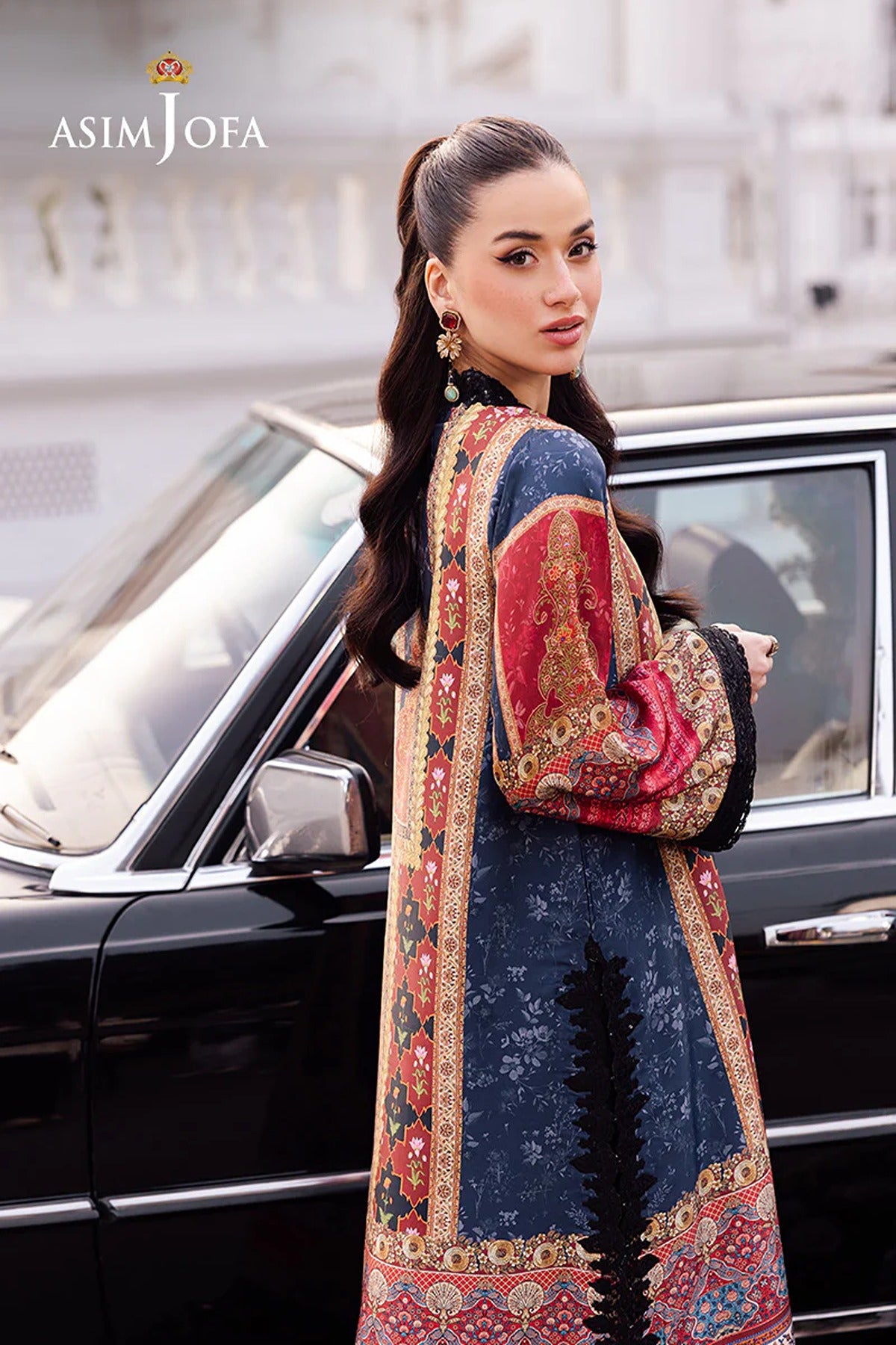 Bold and captivating, this black outfit is a canvas of uniqueness with its bohemian inspired print. The digitally printed shirt features beautifully embroidered neckline adding a touch of elegance, while the detailed embroidery on the sleeves and borders enhances its luxurious appeal. Paired with a digitally printed silk dupatta that drapes like a shadow of refined grace, this outfit is a flawless blend of dramatic charm and versatile style for both formal and casual events.