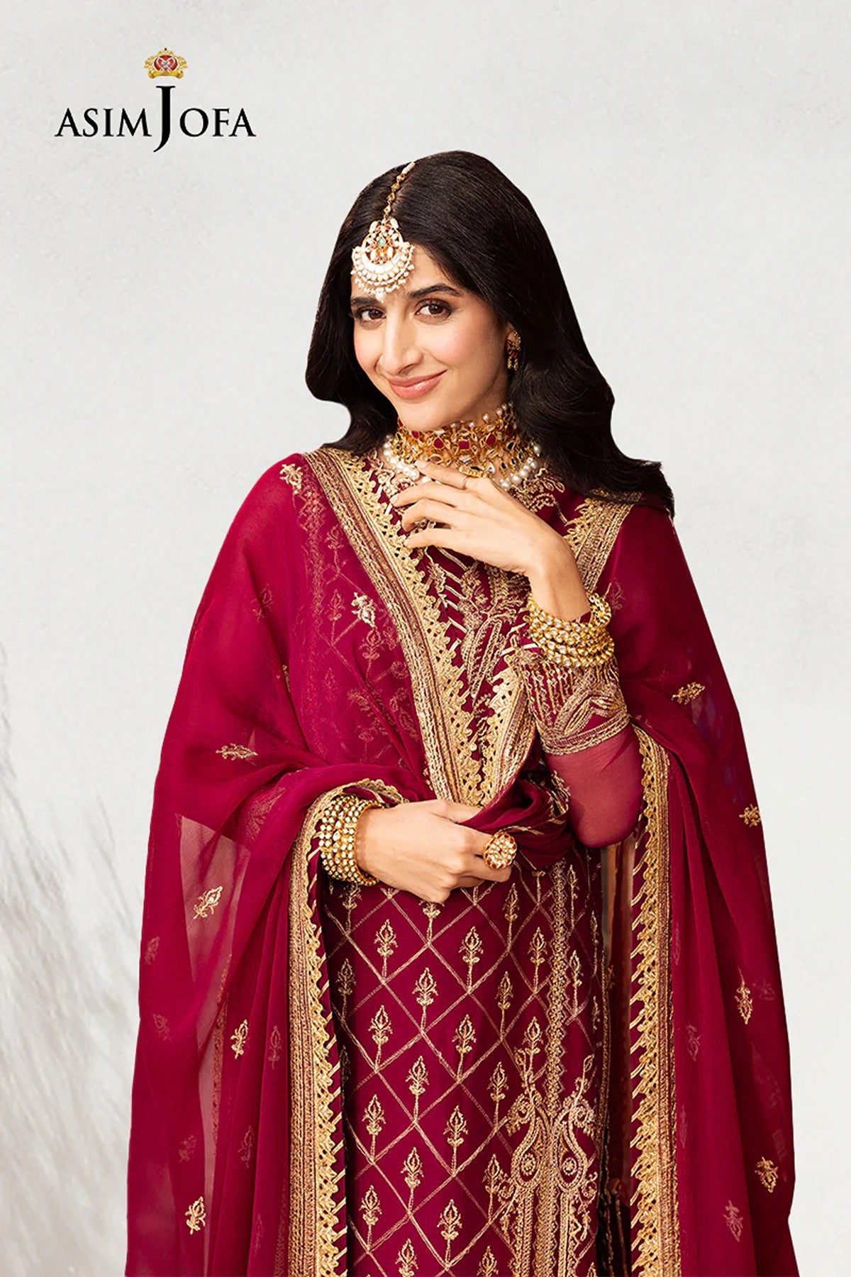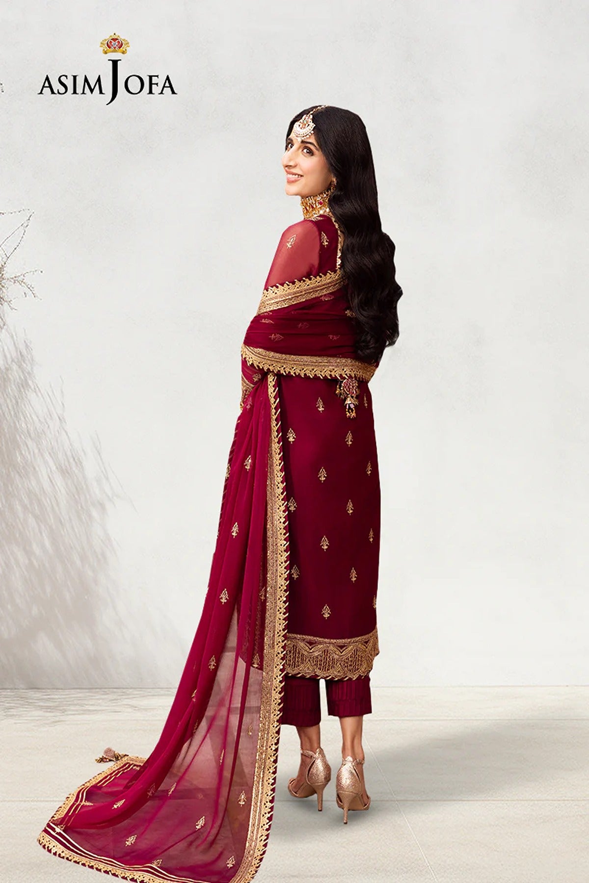 Indulge in the majesty of magenta with “Chamak Damak” collection. This magenta number is a captivating creation adorned with the timeless elegance of Mughal elements and contemporary motifs meticulously embroidered across the shirt. Enhanced with the opulence of gold zari and the shimmering allure of gold sequins, this ensemble is a celebration of tradition and style. The embroidered front center and side panels along with the intricately designed back showcase a symphony of craftsmanship and regality. With embroidered sleeves hemline as well as a chaak border every detail adds to its regal charm. Paired with an embroidered dupatta, it's a tribute to timeless beauty and grace.
