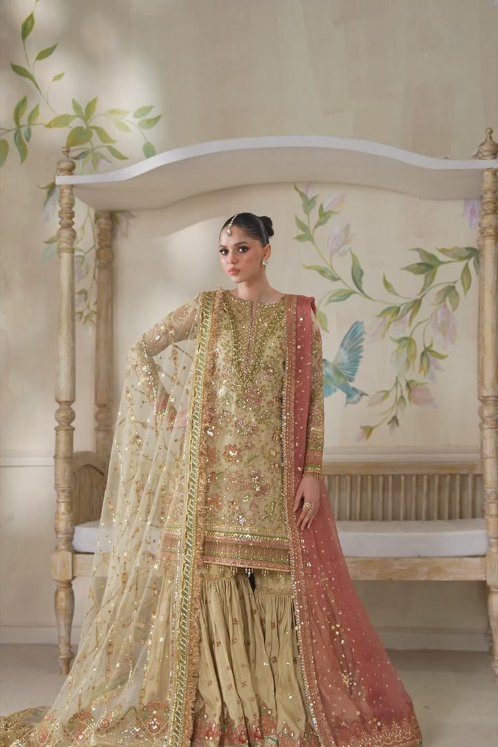 BAROQUE | CHANTELLE | EMBROIDERED NET CH14-02 | SHORT SHIRT & GHARARA