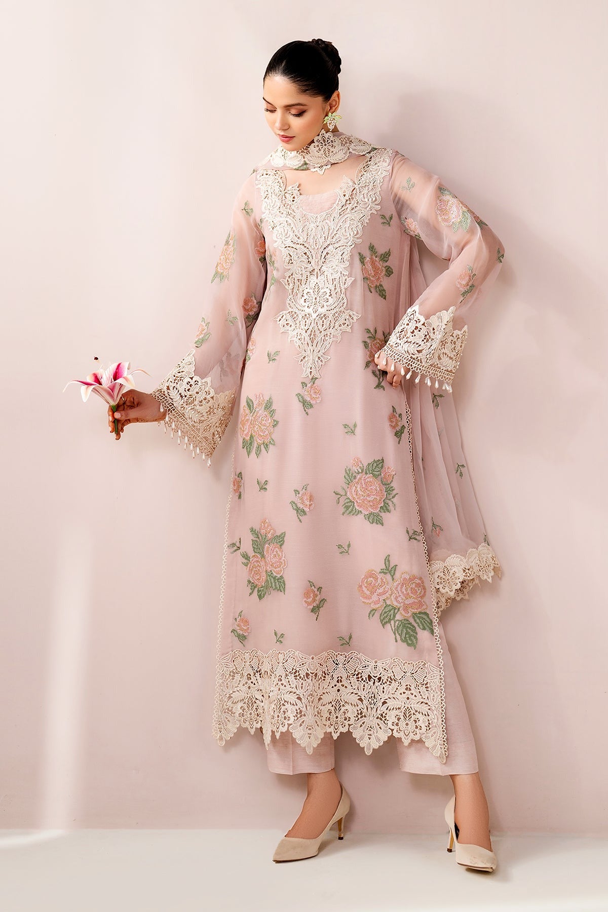 Embroidered organza dupatta border (8.5 yard)