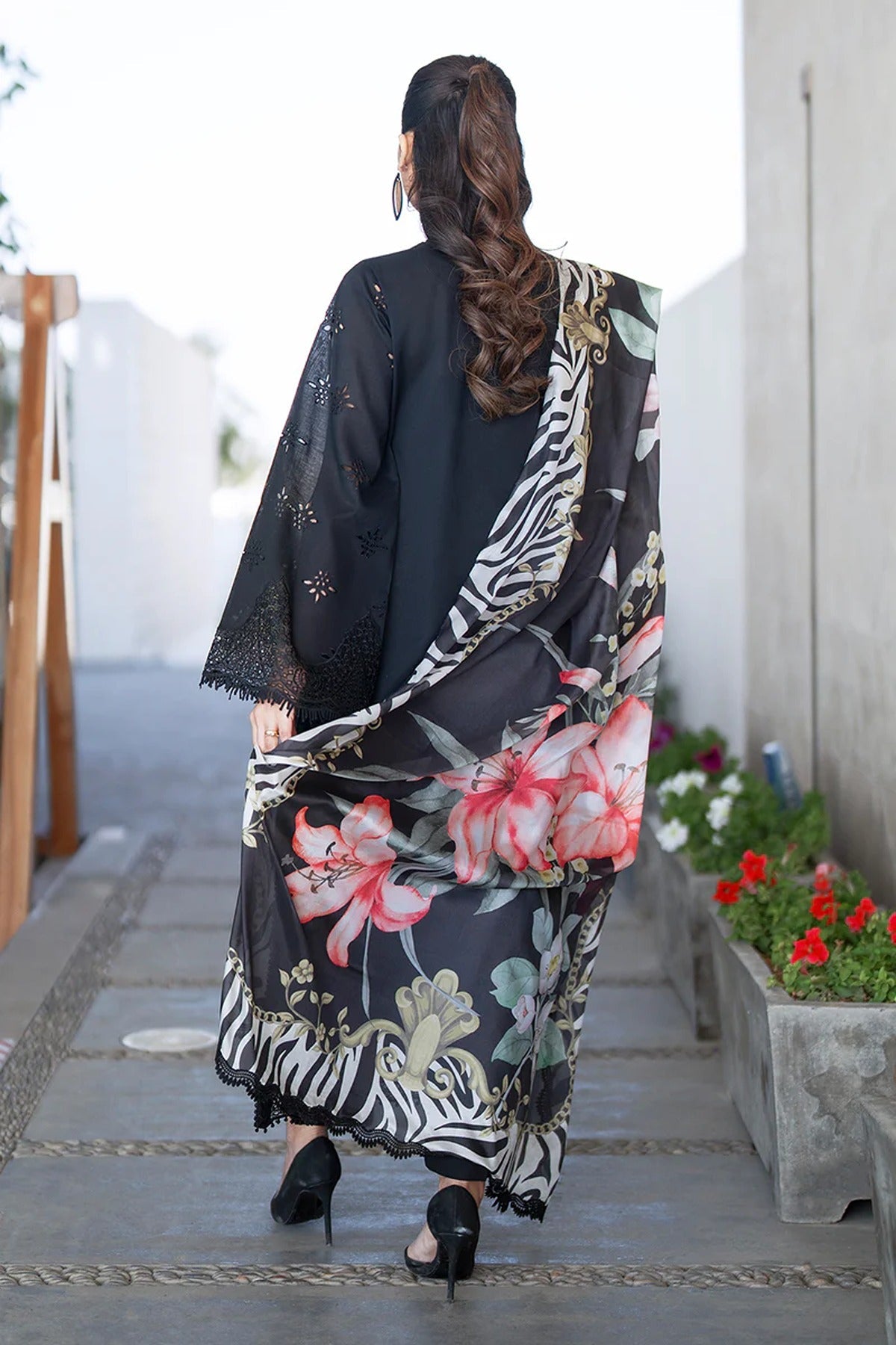 Embroidered lawn front