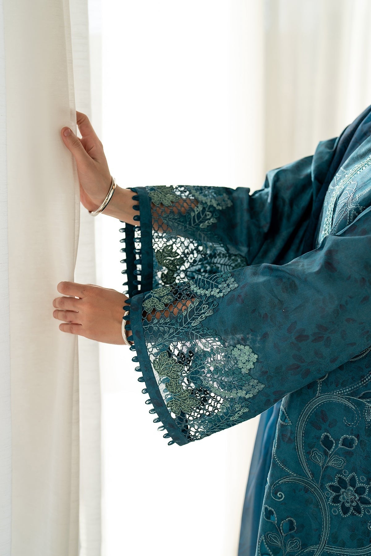 Embroidered organza sleeves border (1.25 yards)