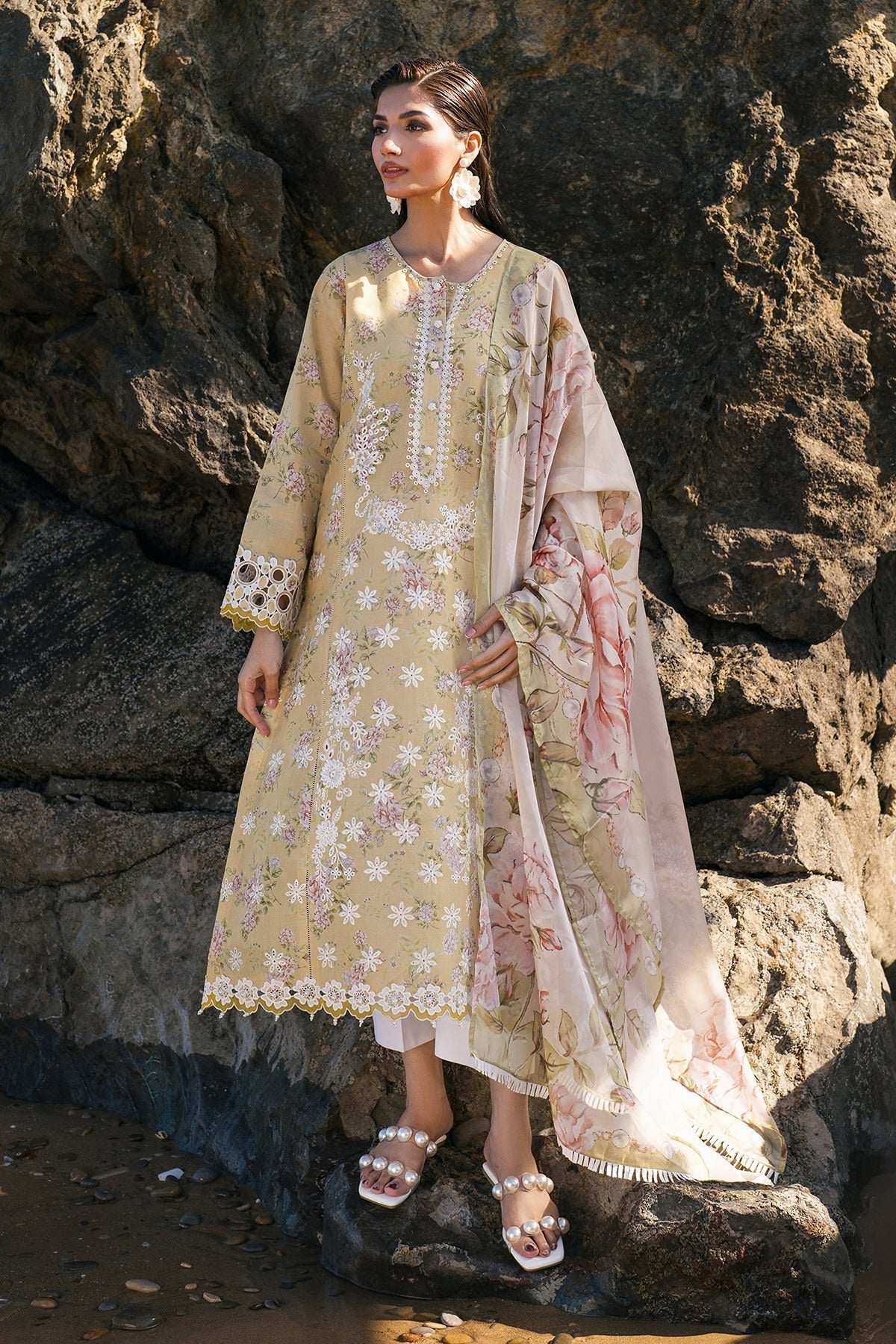 - Embroidered organza dupatta border (2.16 yards)