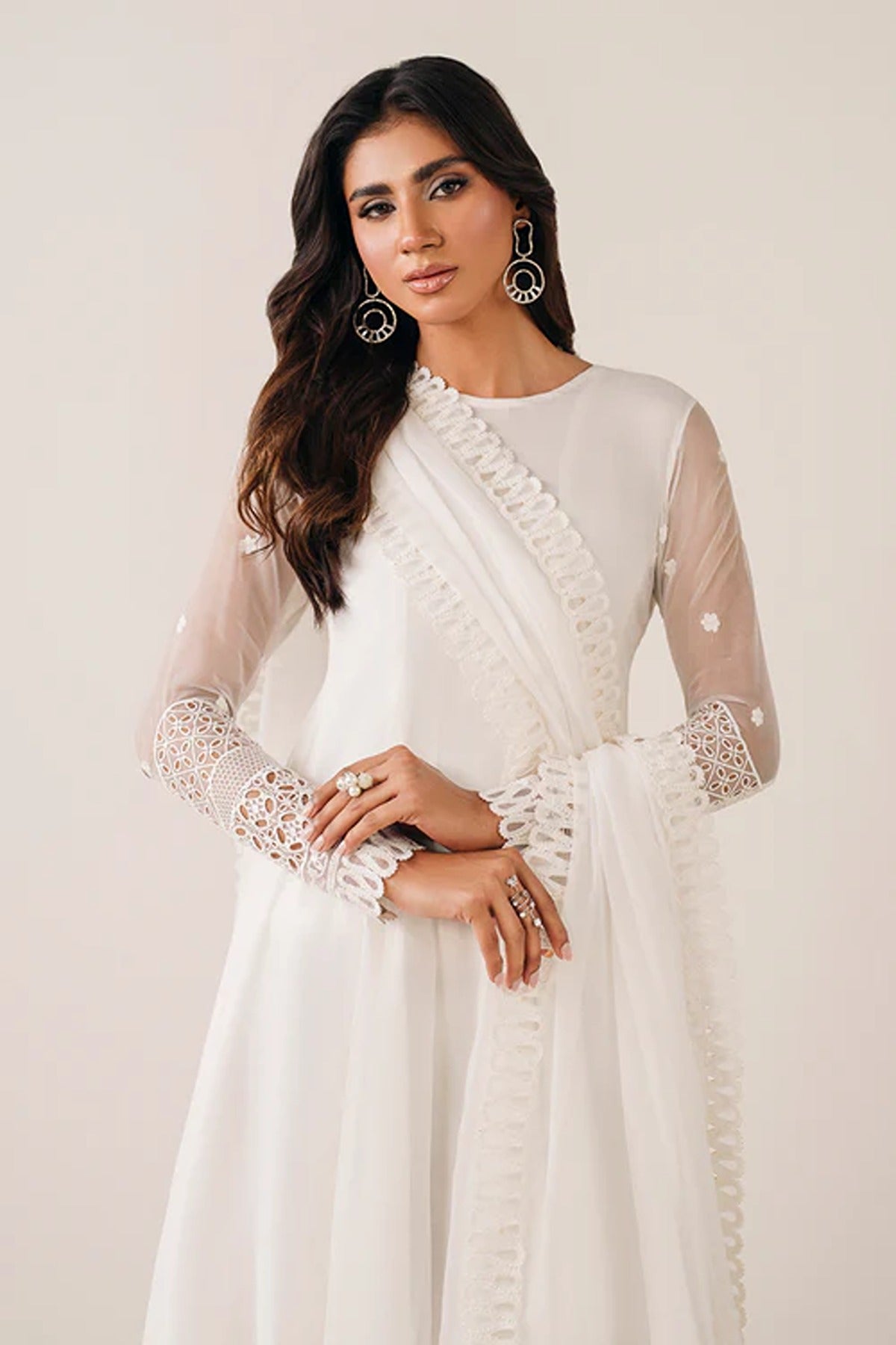 Frock: chiffon with embroidered sleeves