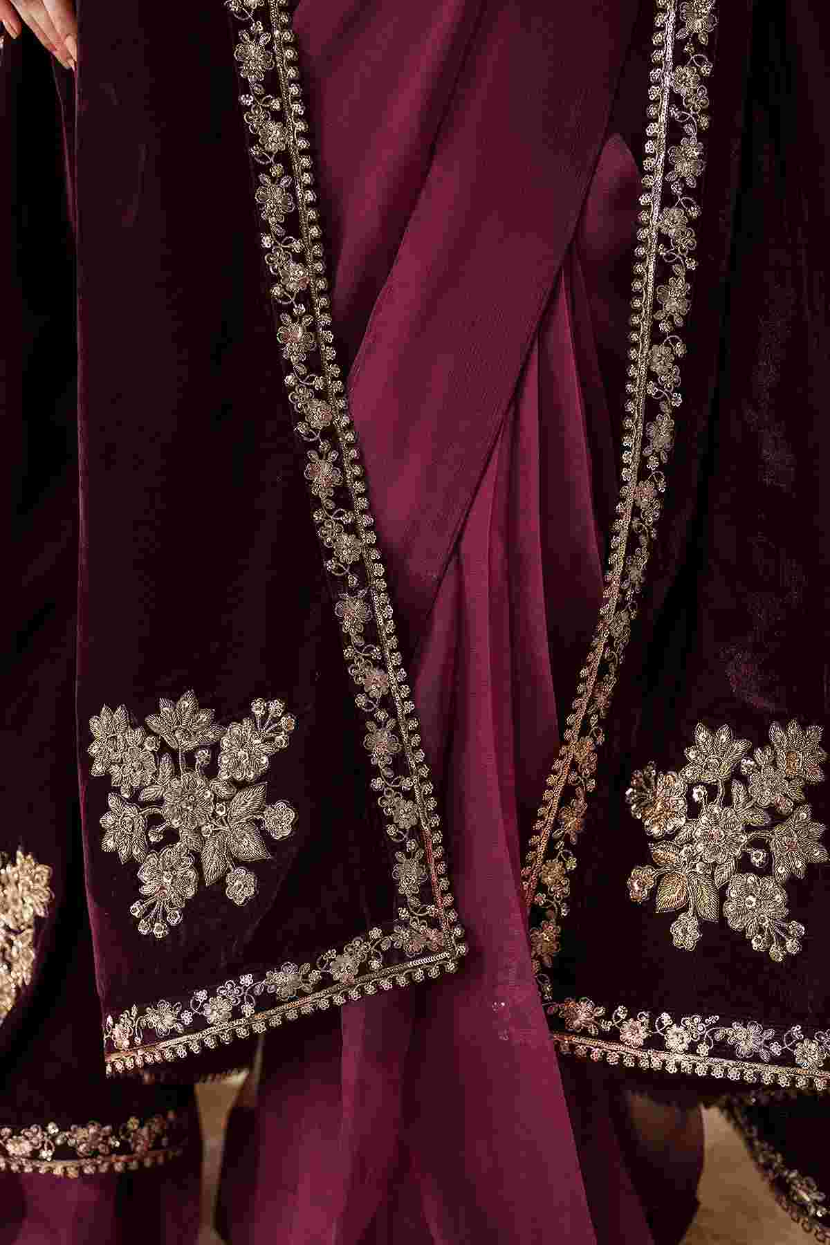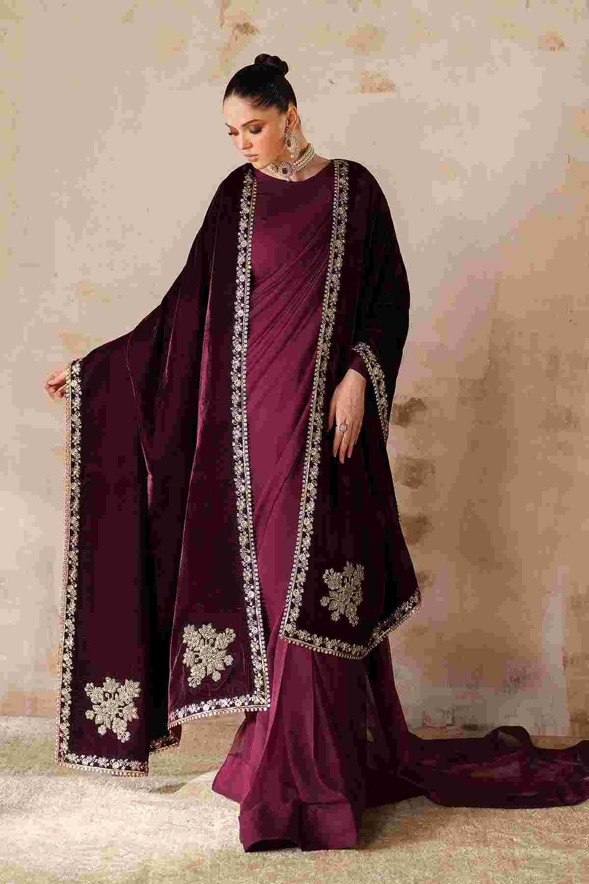 - Embroidered hand embellished velvet shawl (2.75 YARDS)