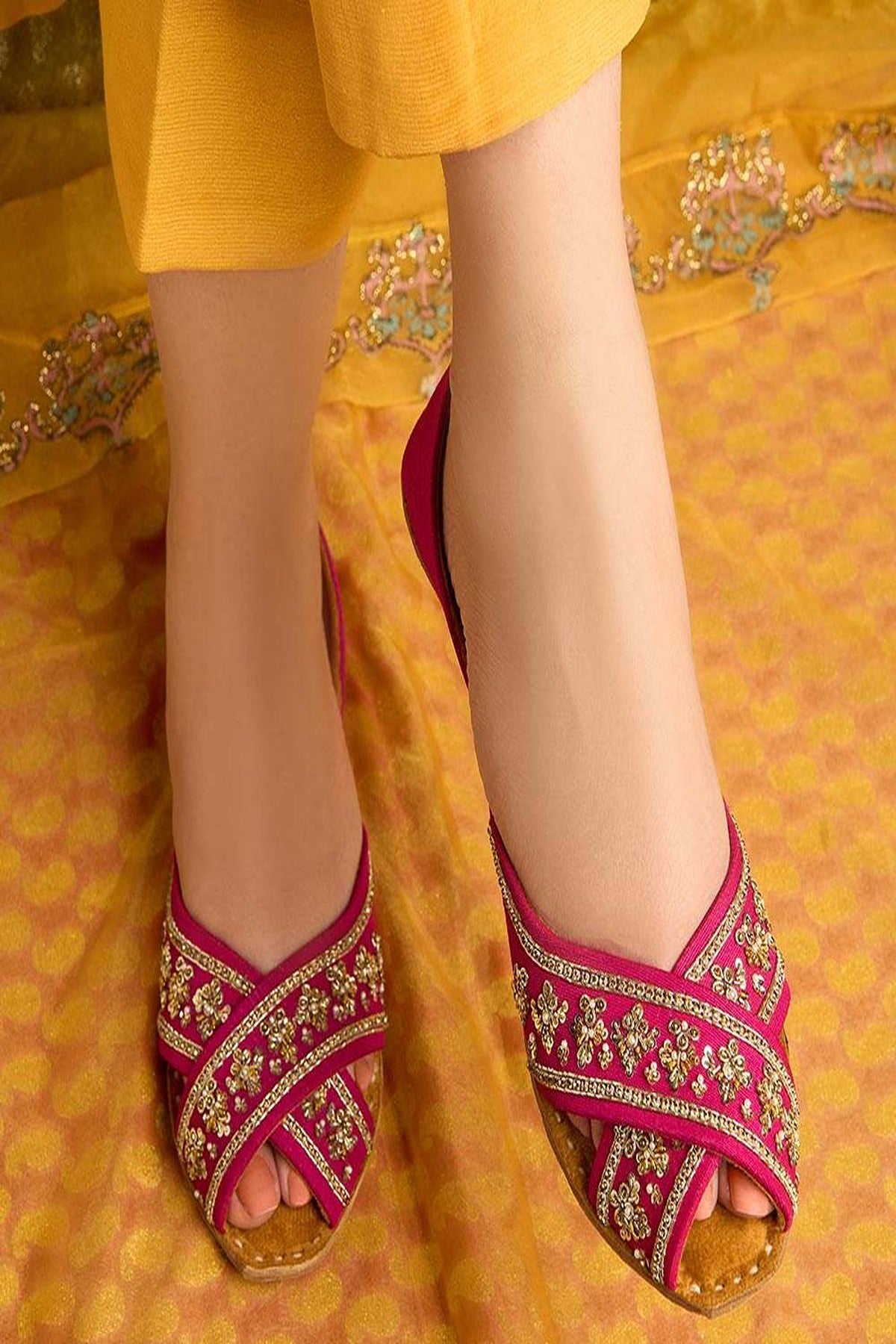 This raani pink signature hand-embroidered Peshawari khussa is delicate and alluring. It can be an amazing fit for both eastern and western fits.