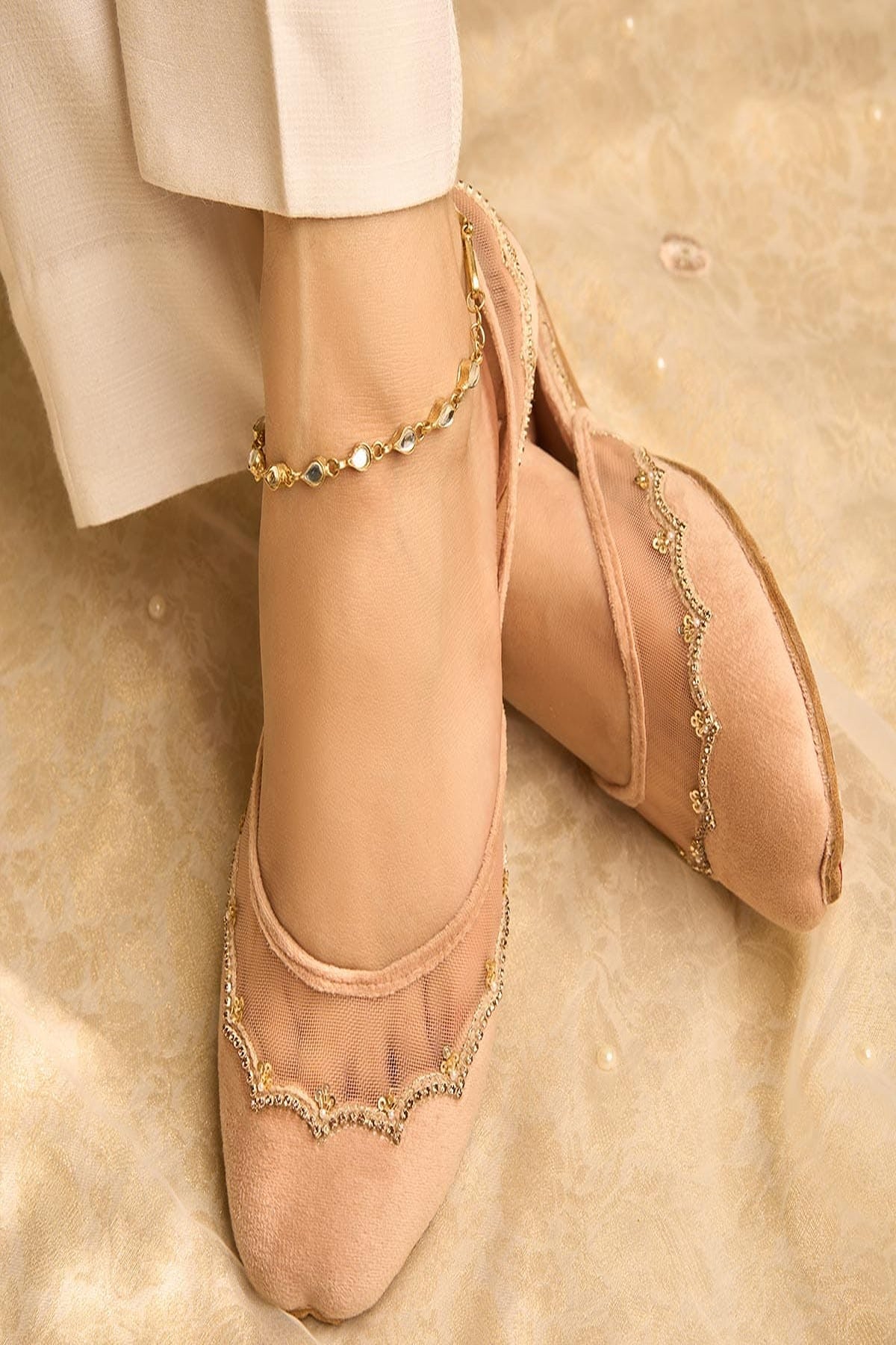 Your favourite colour is our favourite too. Dazzle brings yet another drool worthy design in our hot seller blush tone. Its a girly manifestation came to life. Trust us and your barbie dreams will come to life with our Gulaab Jal khussas.
