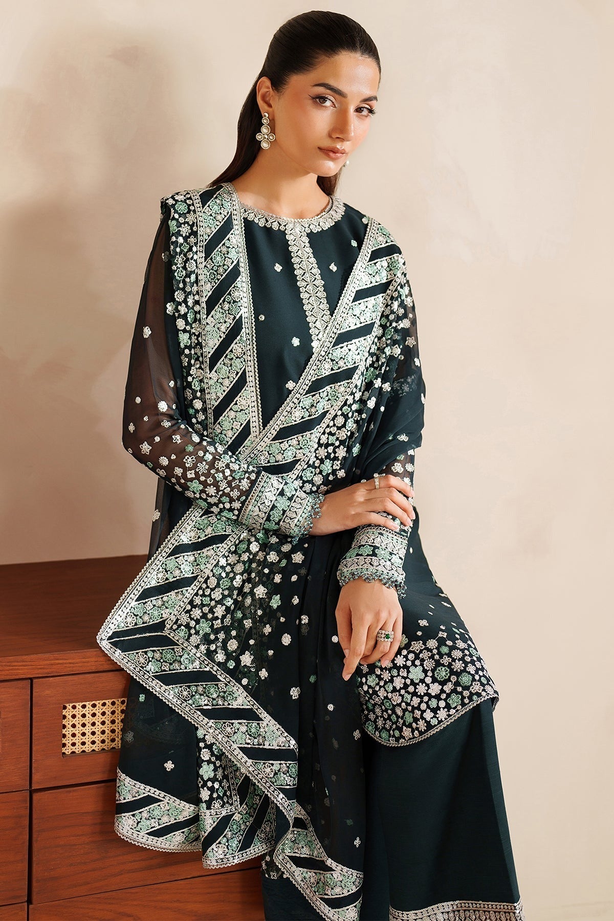 Embroidered Chiffon Front