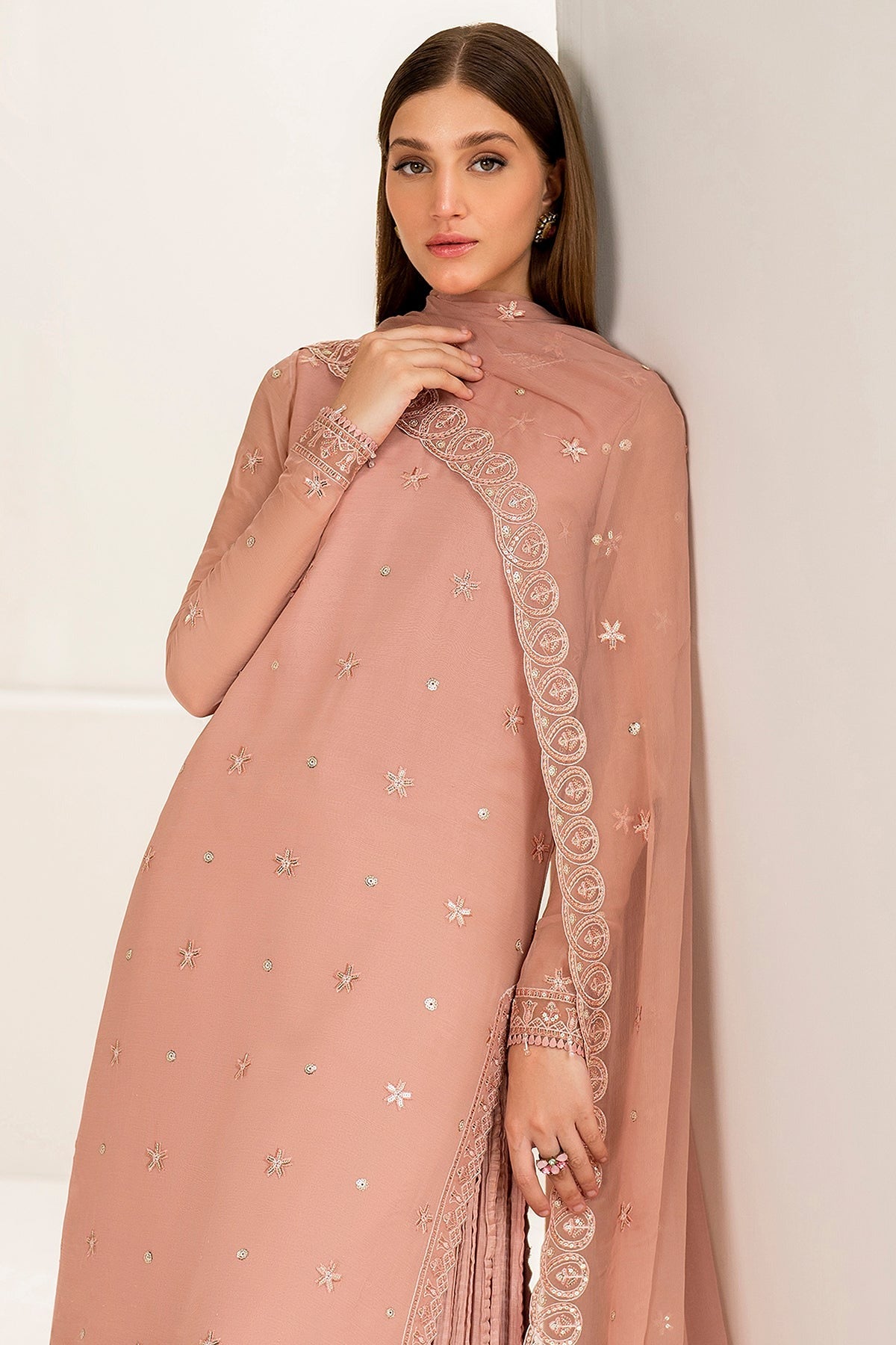 Embroidered Chiffon Front