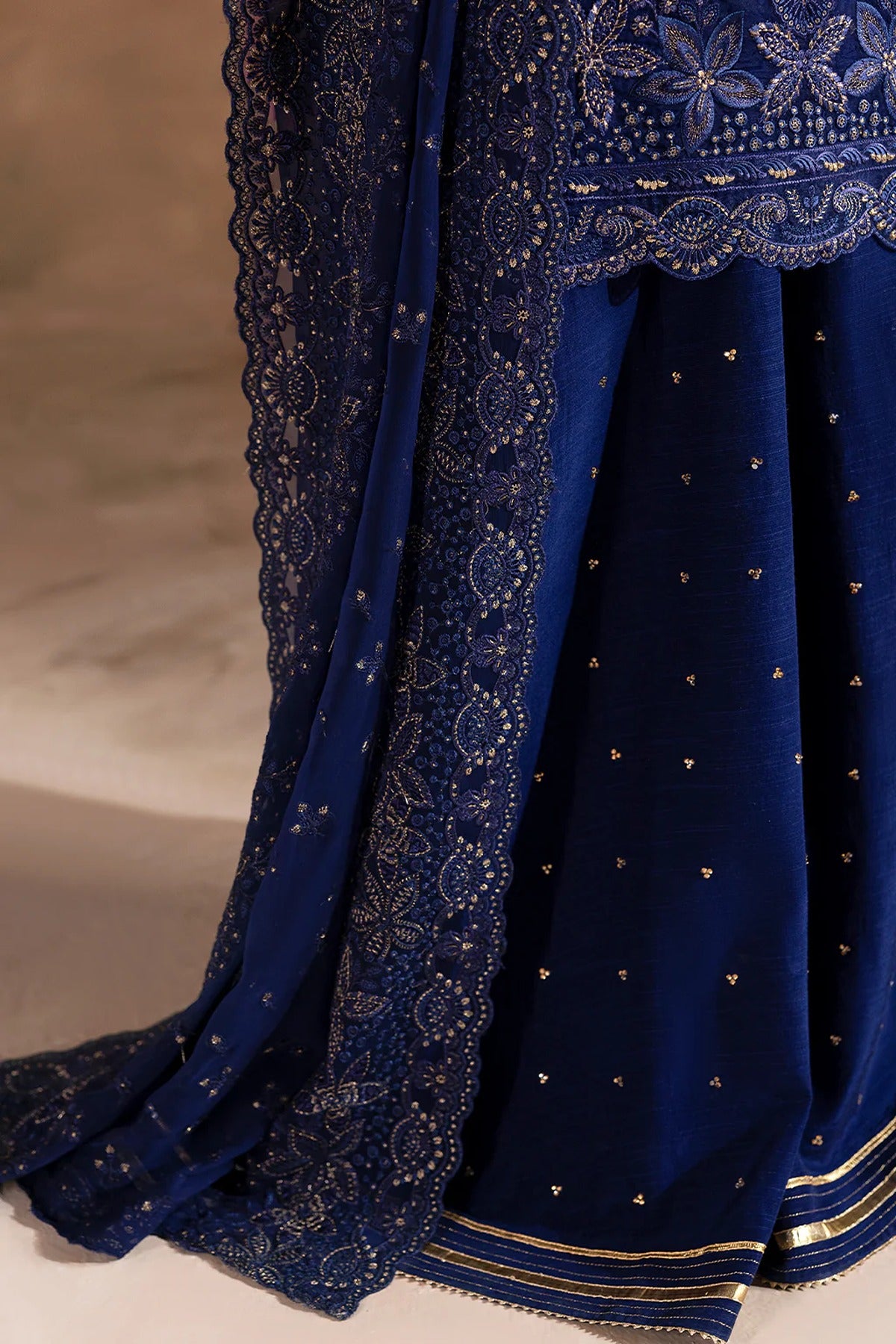 A luxurious outfit from the Laconic by Flossie Executive Collection. The ensemble features an intricately embroidered chiffon front, back, and sleeves, paired with a matching chiffon dupatta. Complementing the design are beautifully embroidered organza borders for the front, back, and sleeves, adding a touch of sophistication. The outfit is completed with plain silk trousers, offering both comfort and elegance. Perfect for formal events, this outfit blends traditional craftsmanship with modern aesthetics.