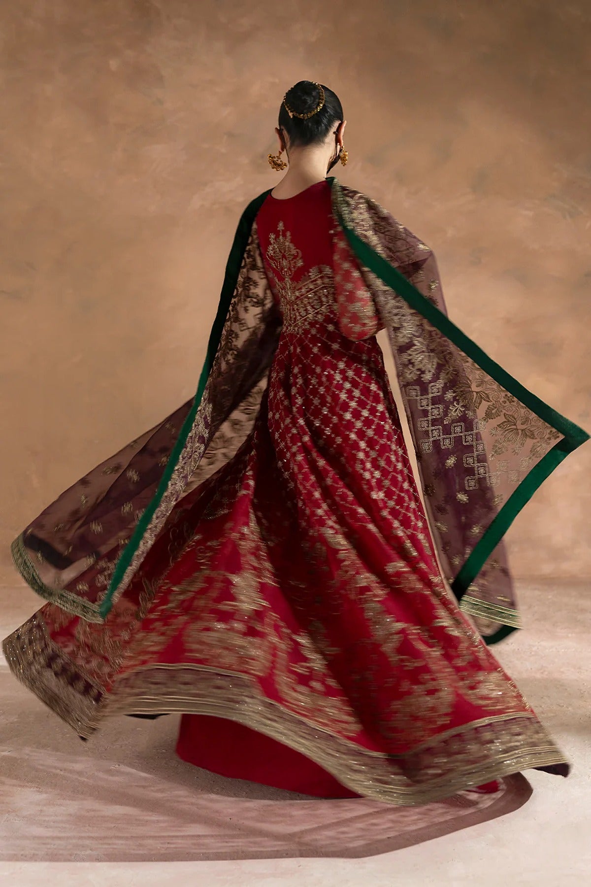 A regal ensemble that exudes sophistication, this outfit showcases masterful craftsmanship with intricate embroidery delicately designed on premium organza fabric. The ensemble is further enhanced by contrasting borders adorned with detailed handwork, adding a striking visual appeal. The luxurious silk accents bring a touch of elegance and refinement, seamlessly blending tradition with modernity. Paired with a plain silk trouser, this outfit embodies grace and timeless beauty, making it a perfect choice for formal and festive occasions.