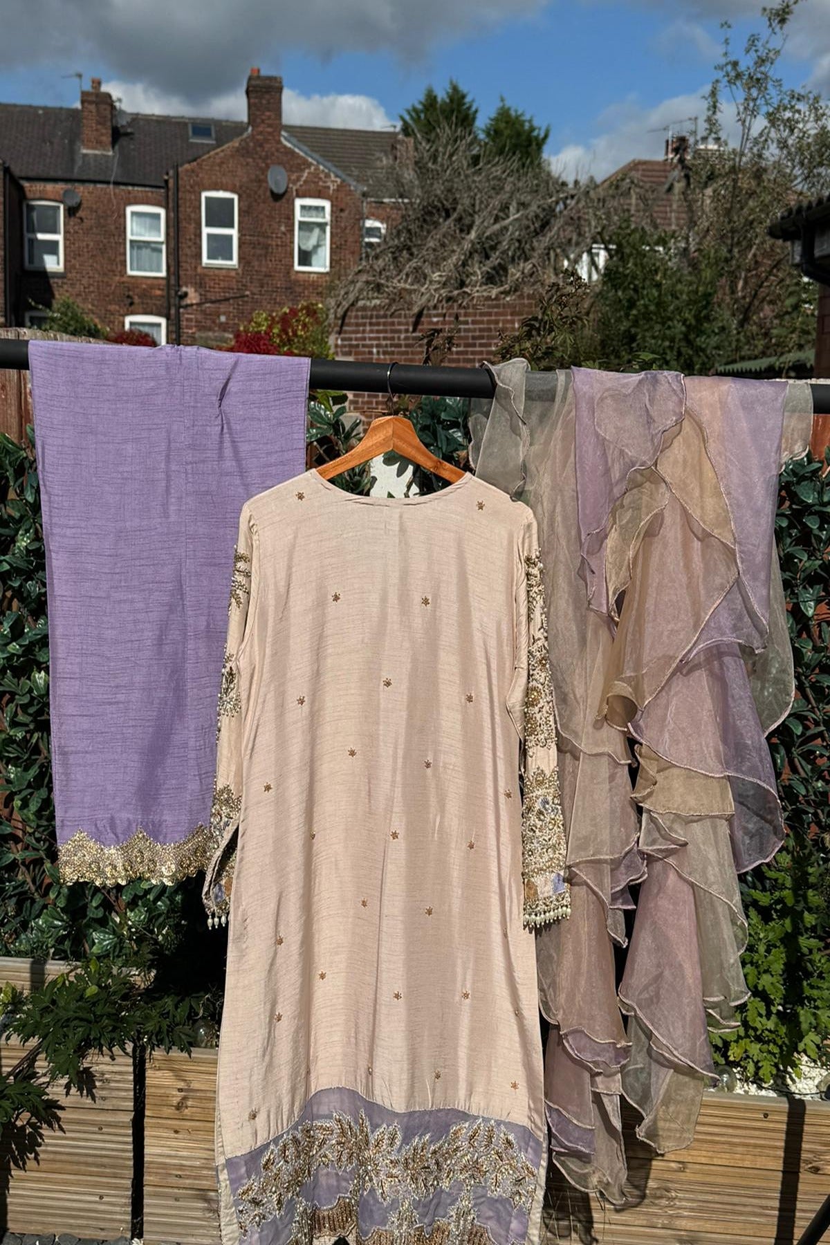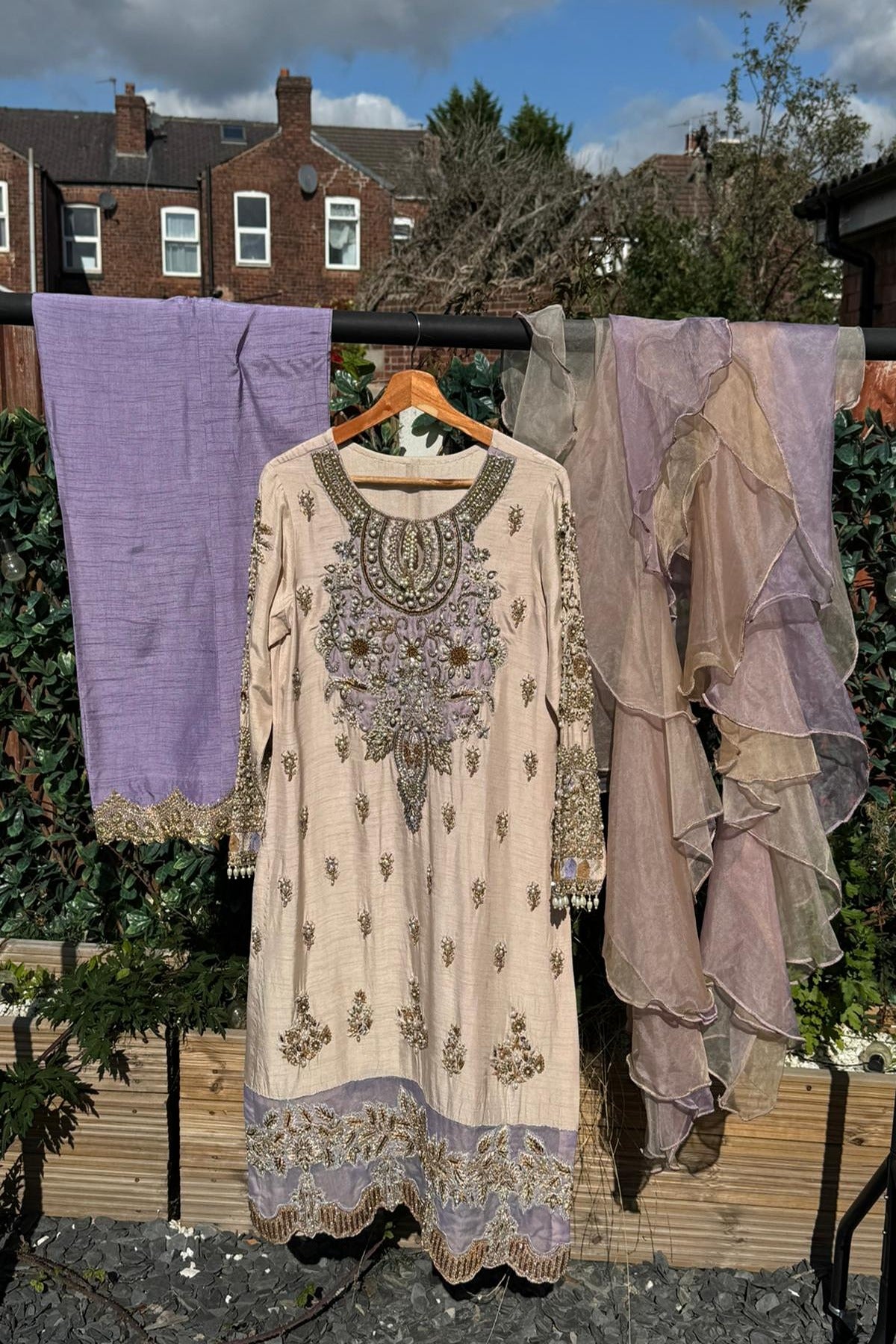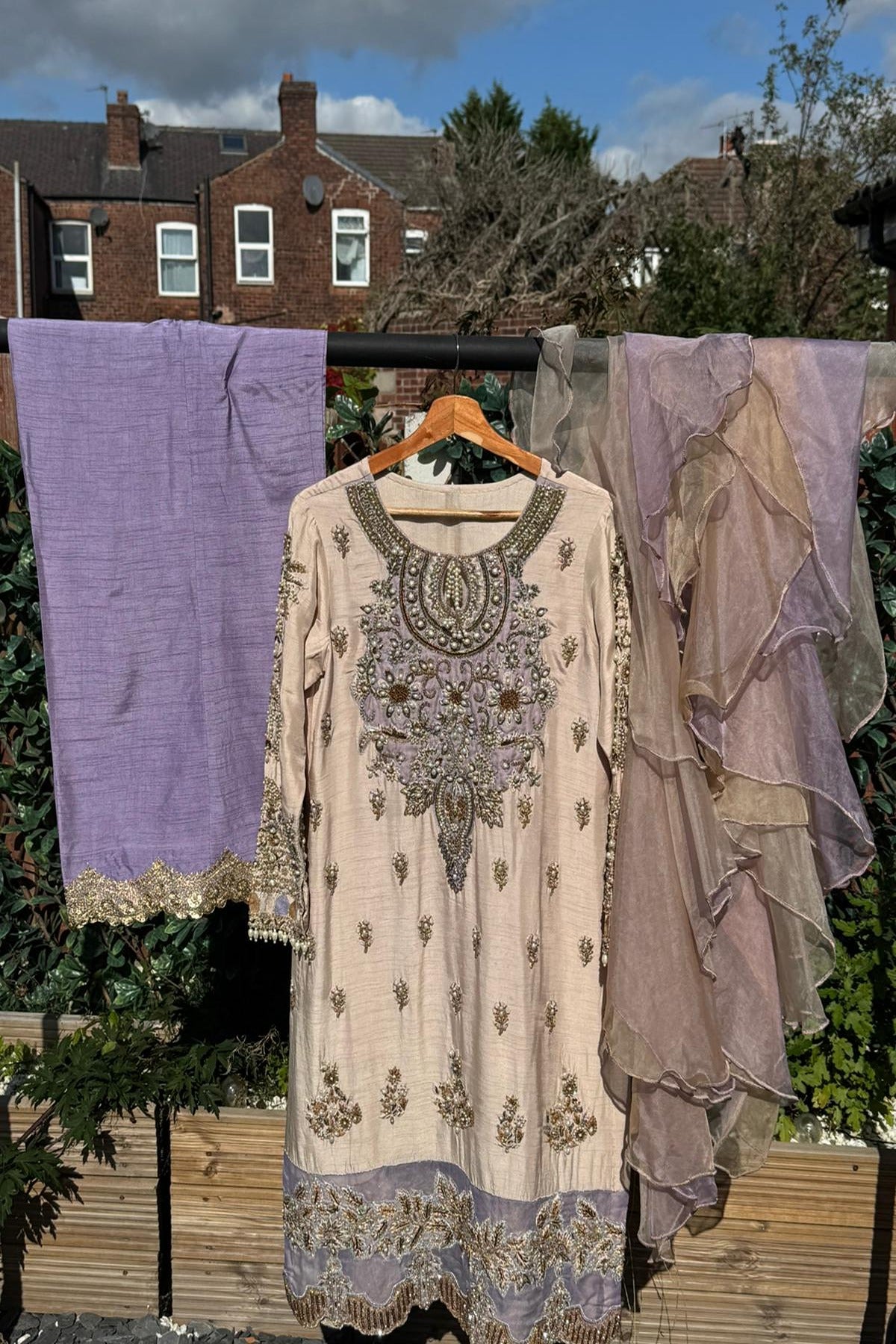 Customisation: - This ensemble can be tailored in design, fabric, colour, and embellishment, and is available in all sizes up to UK 32. It can also be made into a heavier couture piece for a more luxurious finish, with pricing reflecting the level of detail.