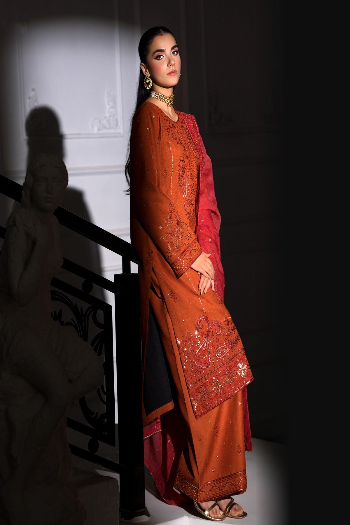 HEERA'S | ZARQAAB | BURNT ORANGE CRIMSON