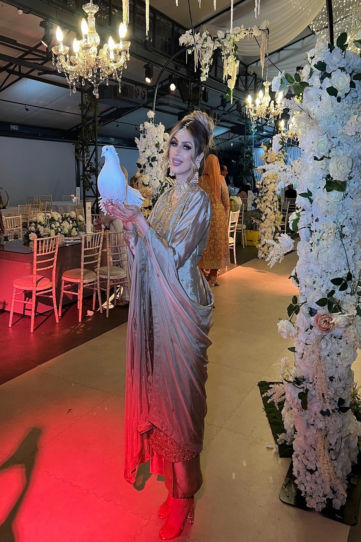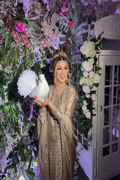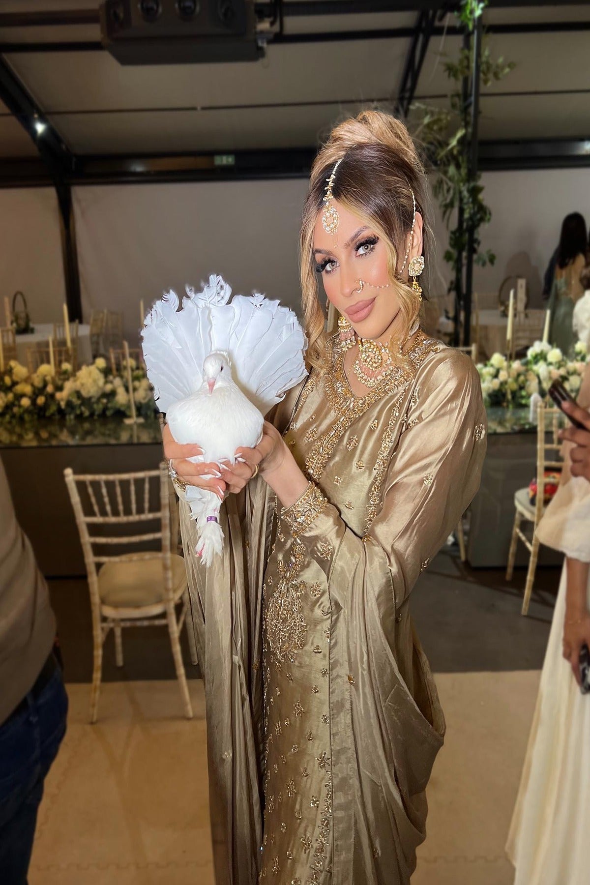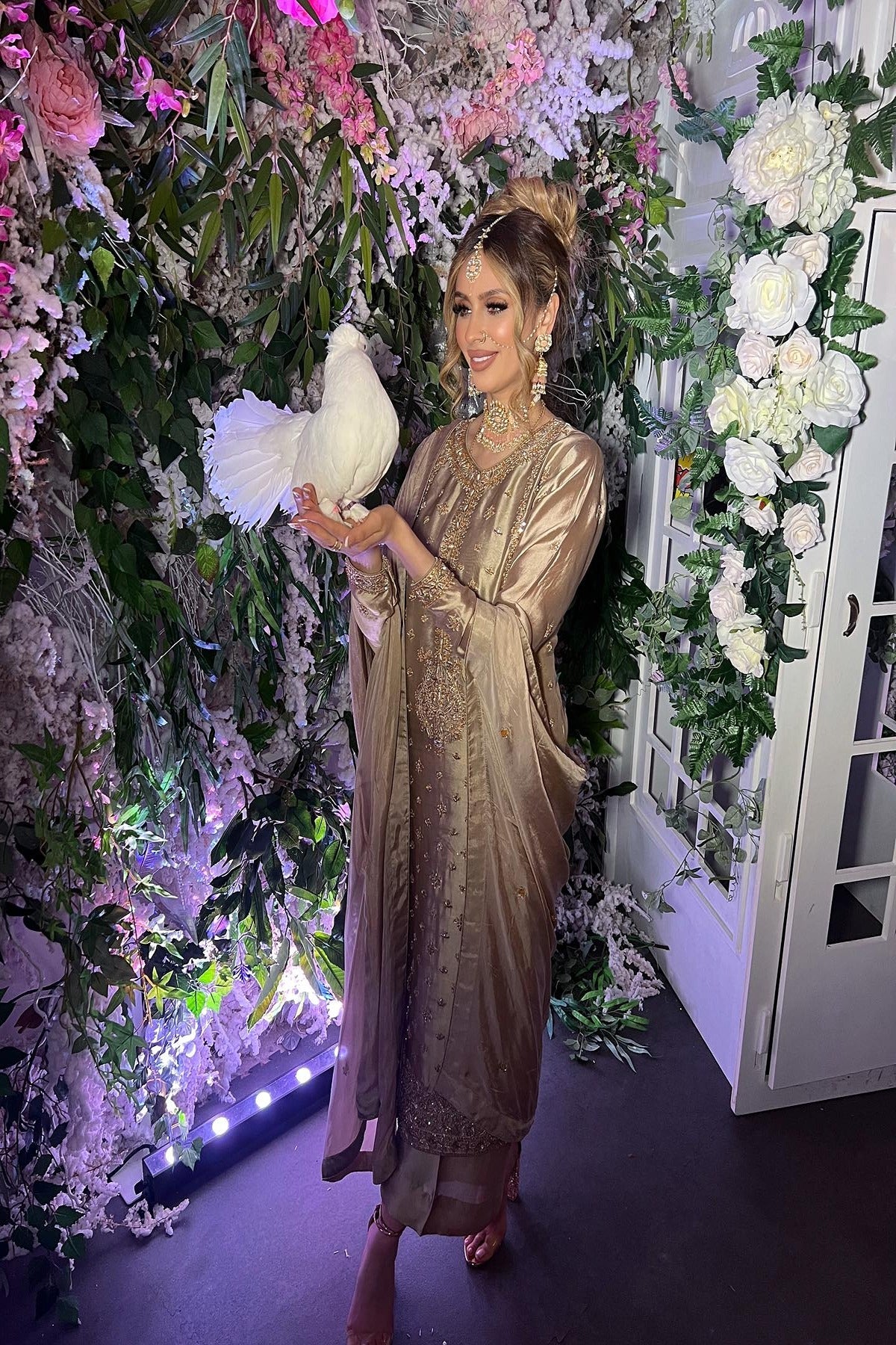 This masterpiece can be tailored entirely to your vision. From design, silhouette, fabric, and colour to the level of embellishment, every element can be customised to reflect your unique taste and budget. Whether you prefer a lighter, graceful finish or a heavier couture-inspired statement piece, this creation offers complete flexibility. Available in all sizes up to UK 32, it can also be reimagined as a more opulent couture version, with pricing reflecting the intricacy of detail.