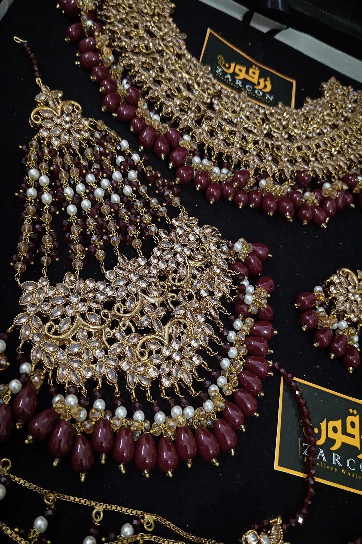 HS | JEWELLERY | GOLDEN MAROON BRIDAL SET