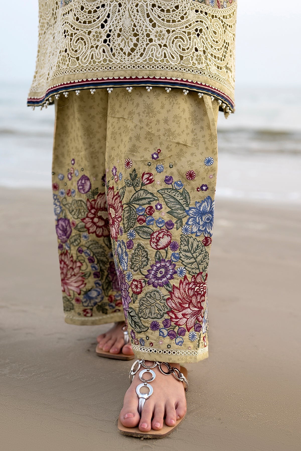 - Trousers/Bottoms styled as per image with embellishments if shown in the image.