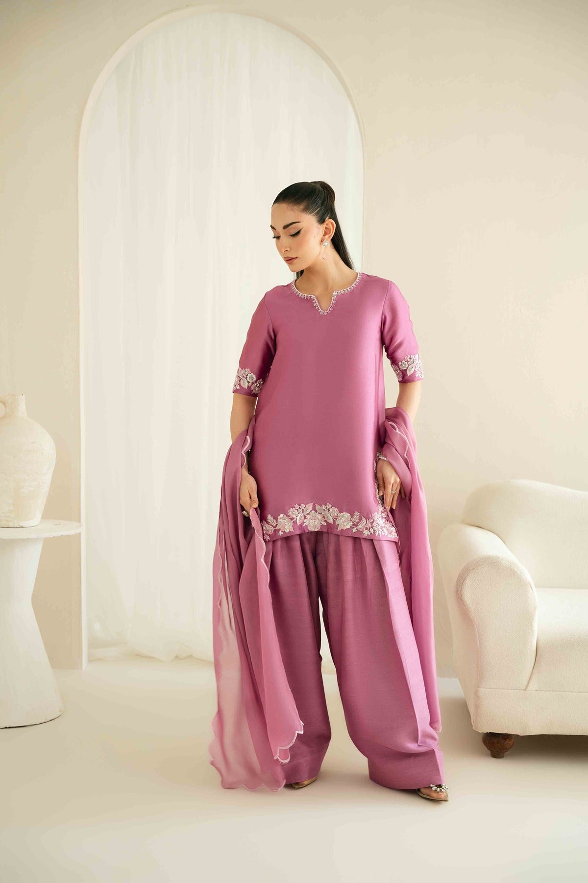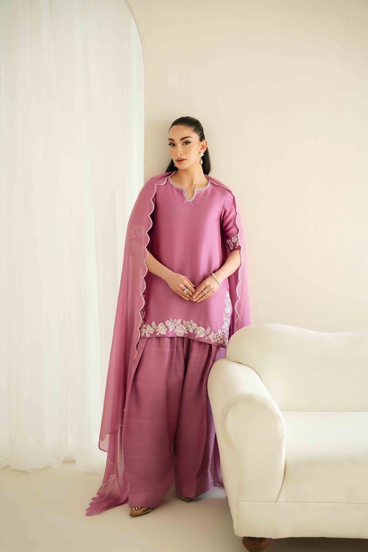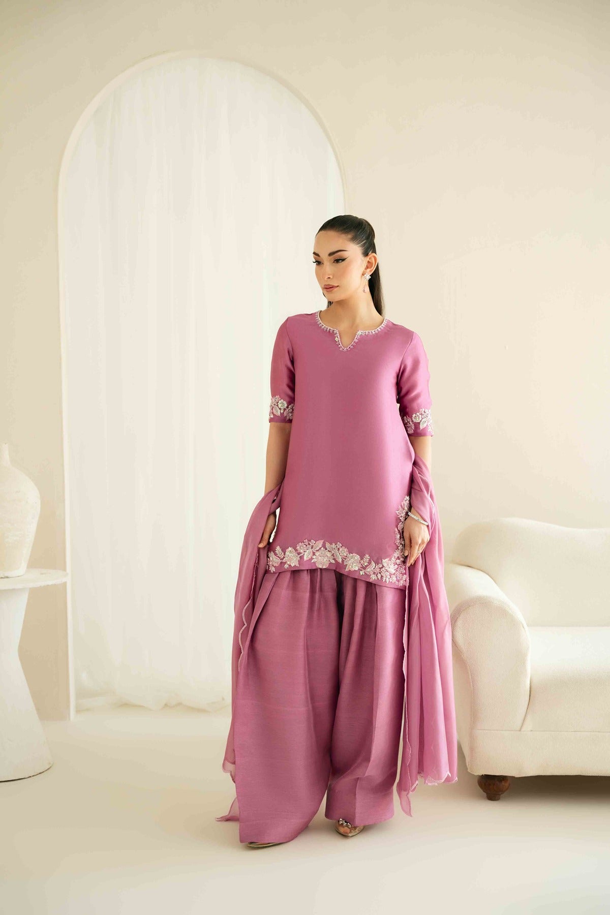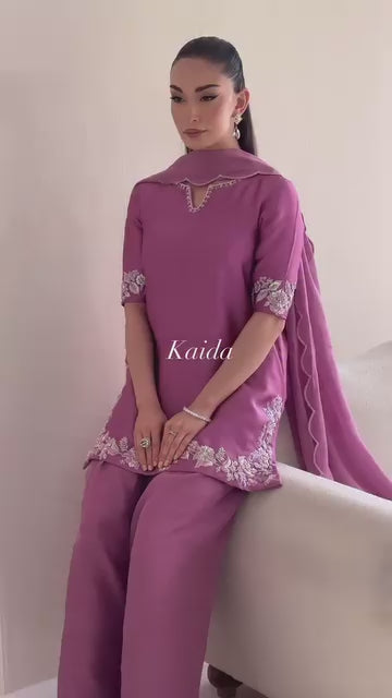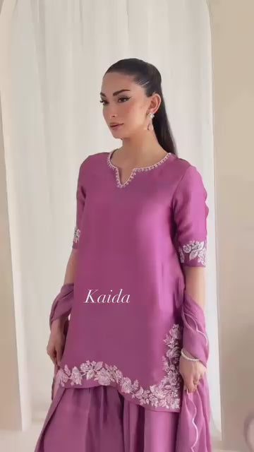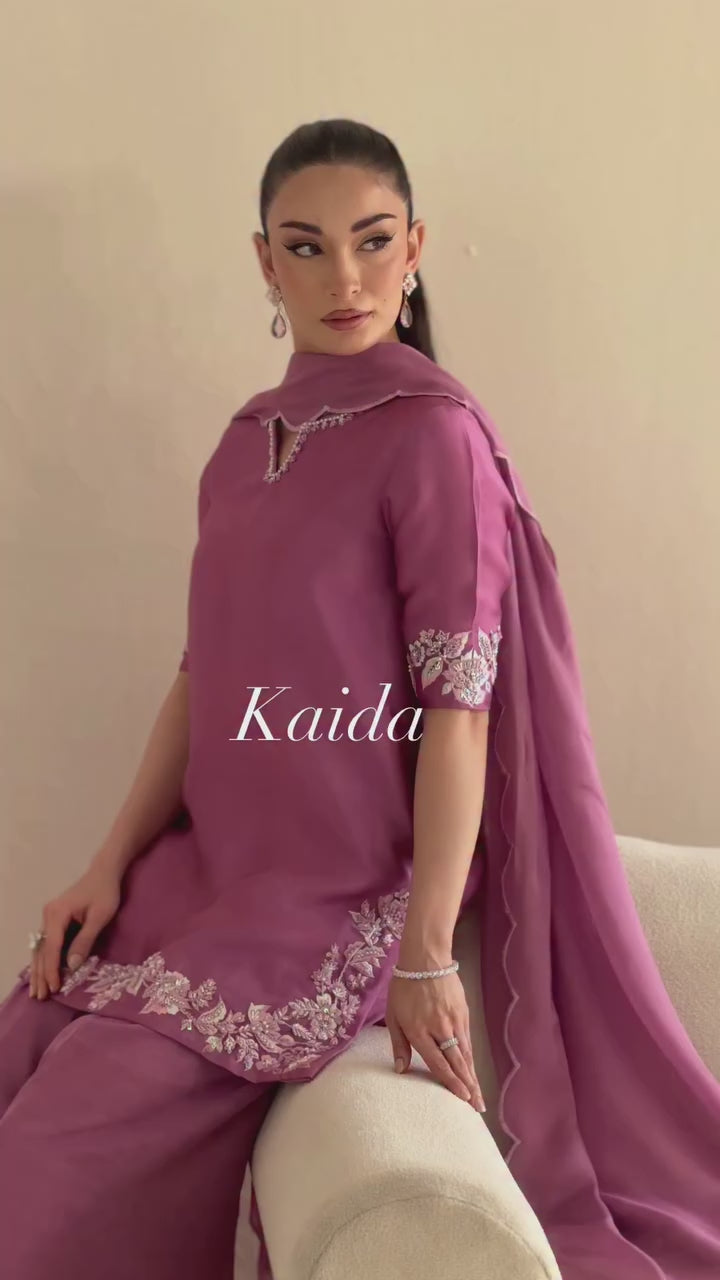 Hand embroidered base with embellishment of pearls, crystals, Katdana in monotones. Duppata embroidered scallops on all 4 sides.