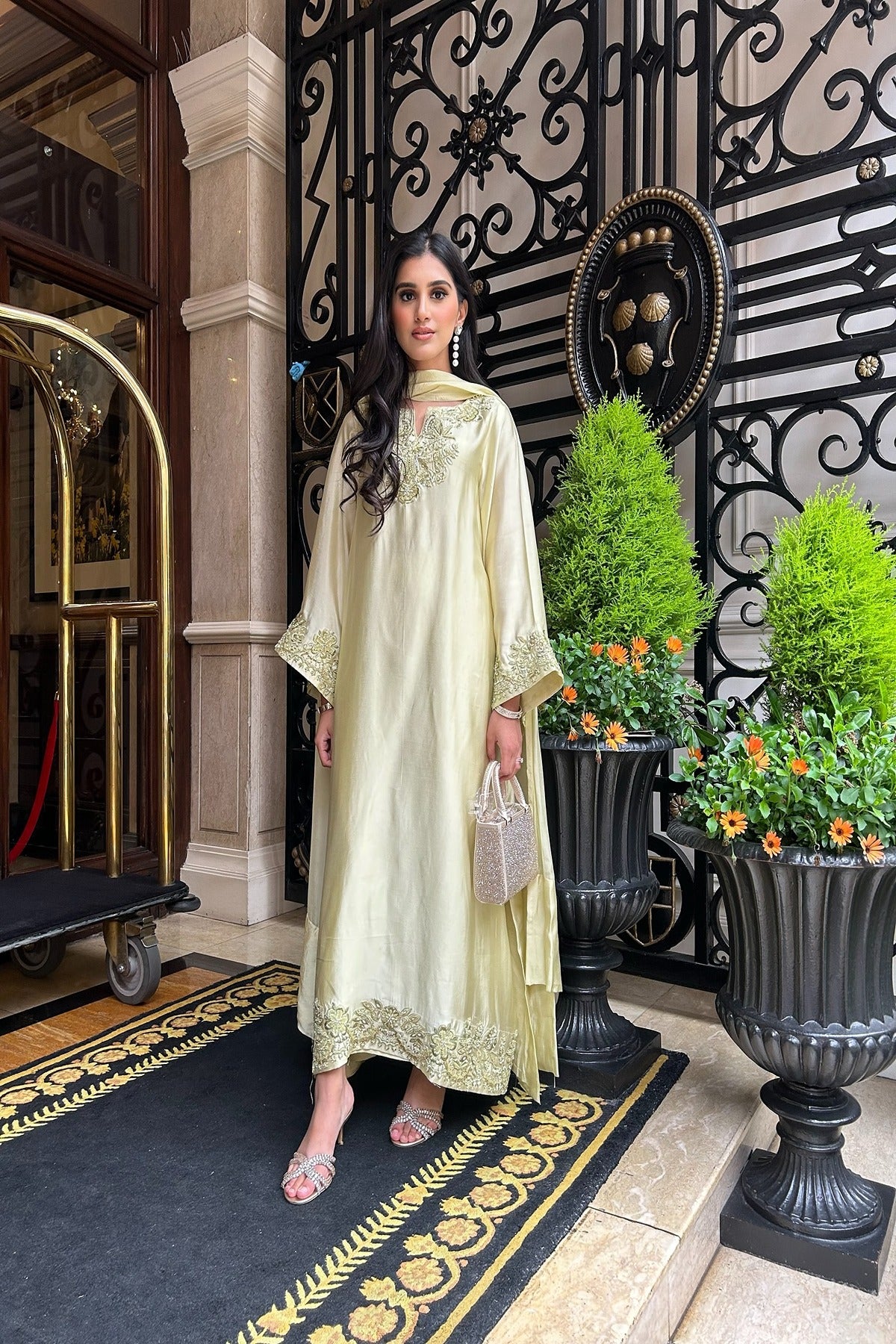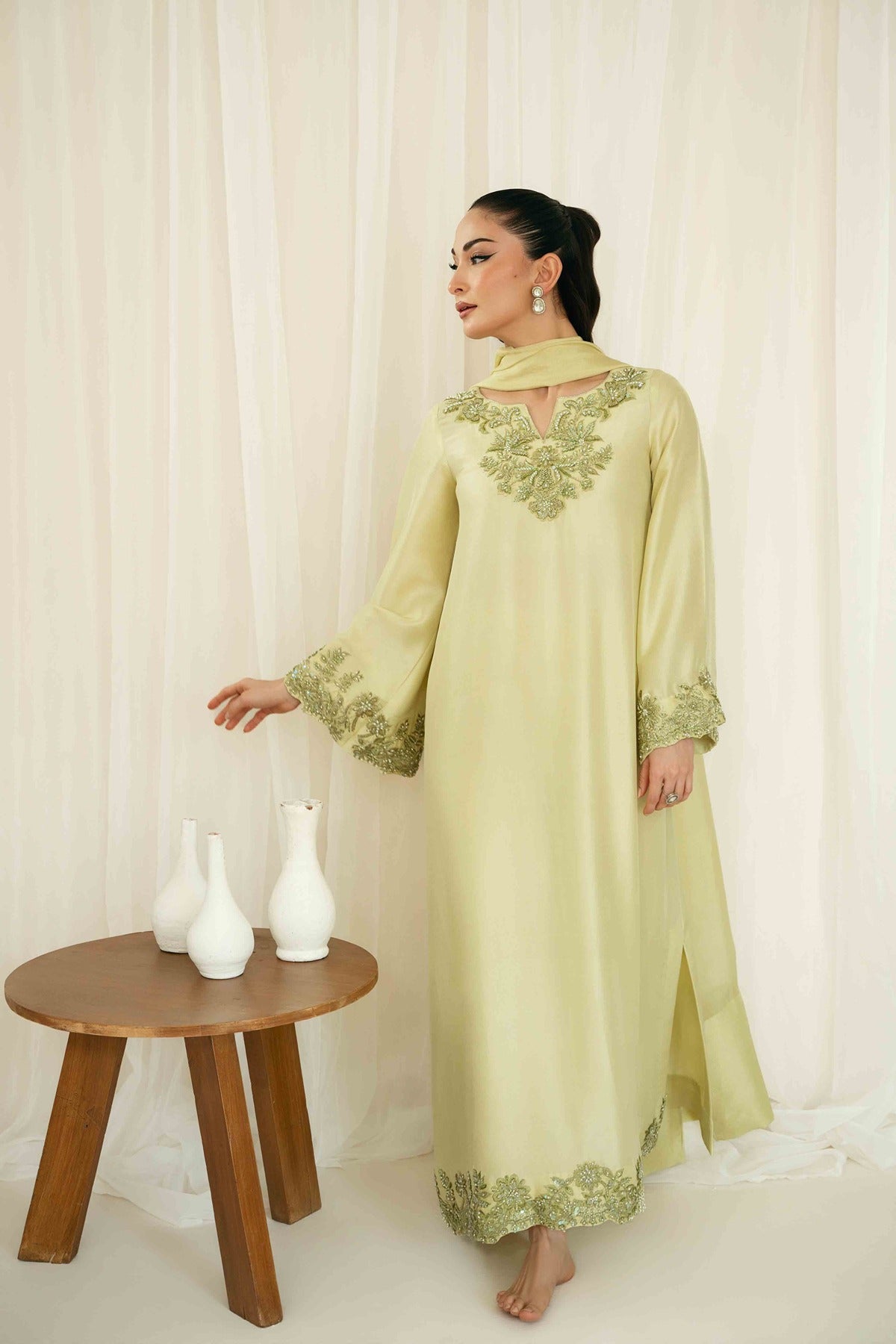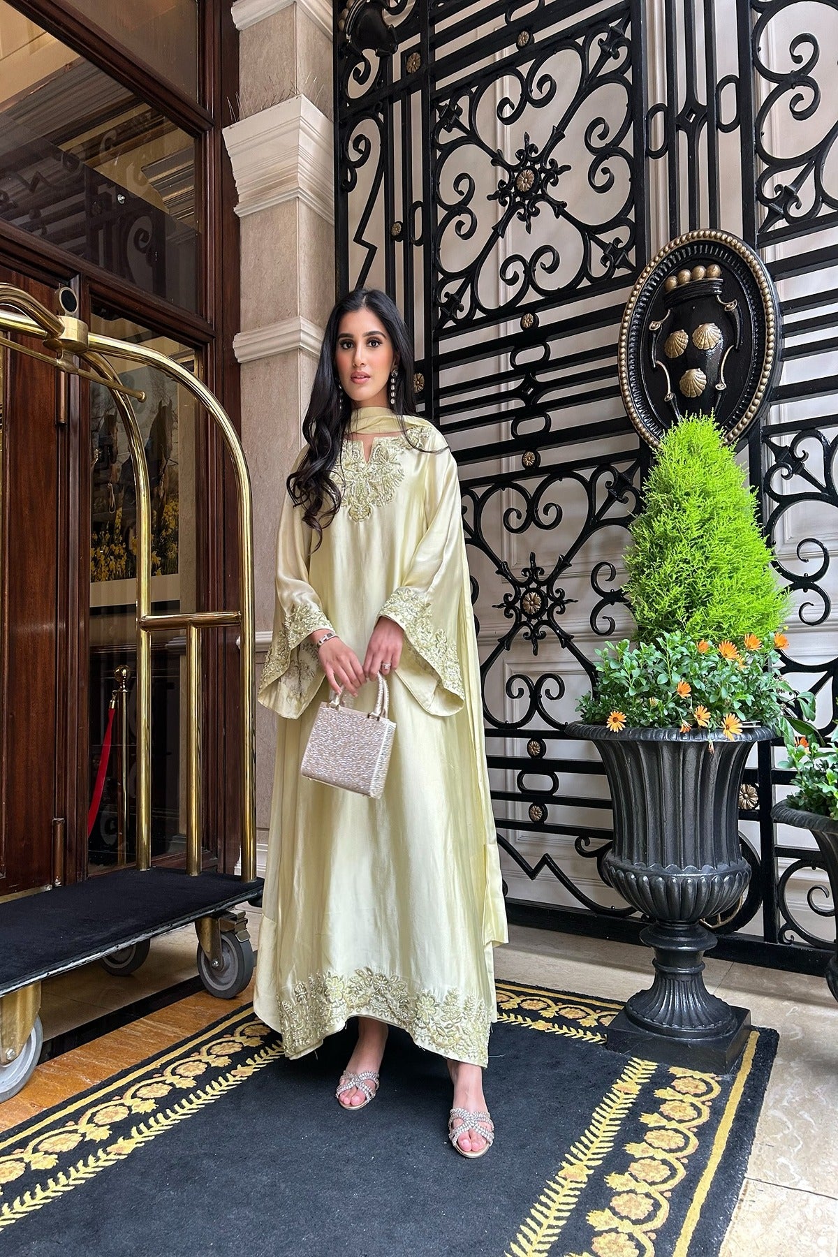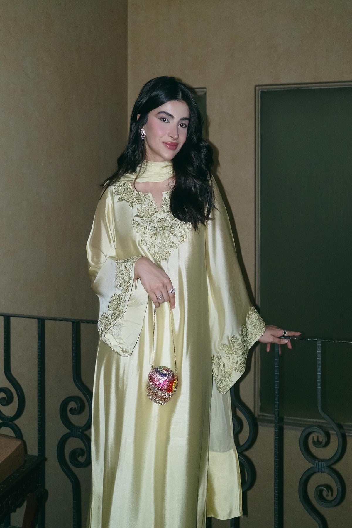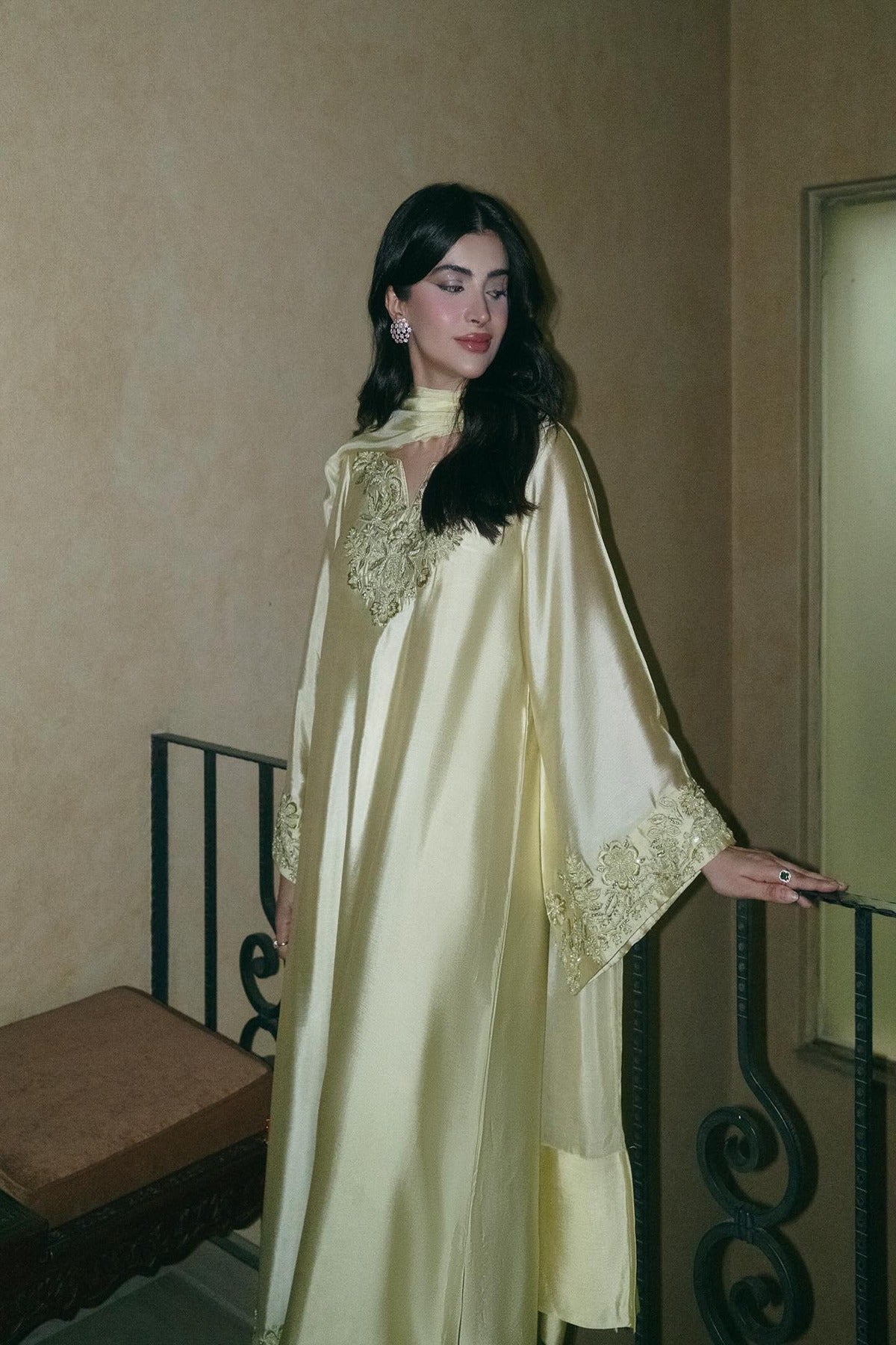 Hand embroidered base with embellishment of crystals, Katdana and sequins in monotones.