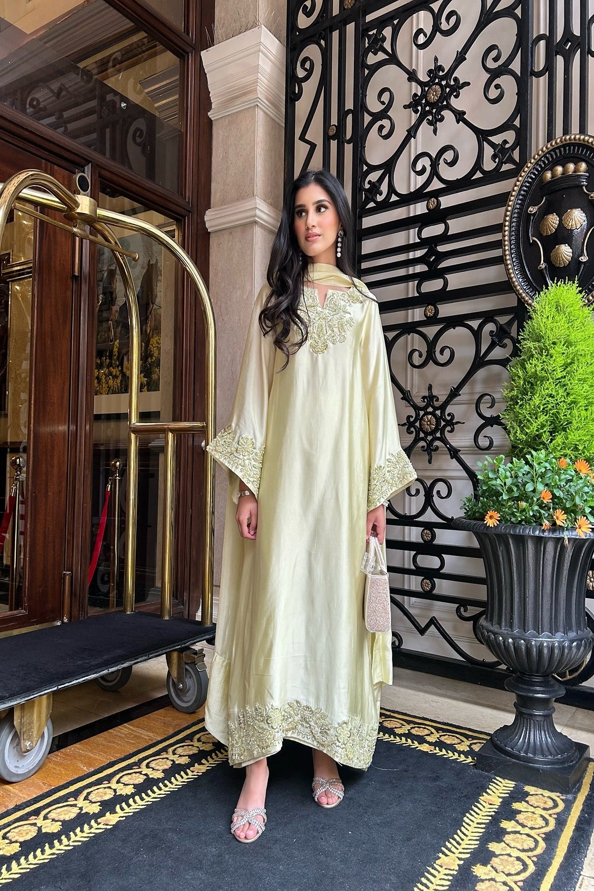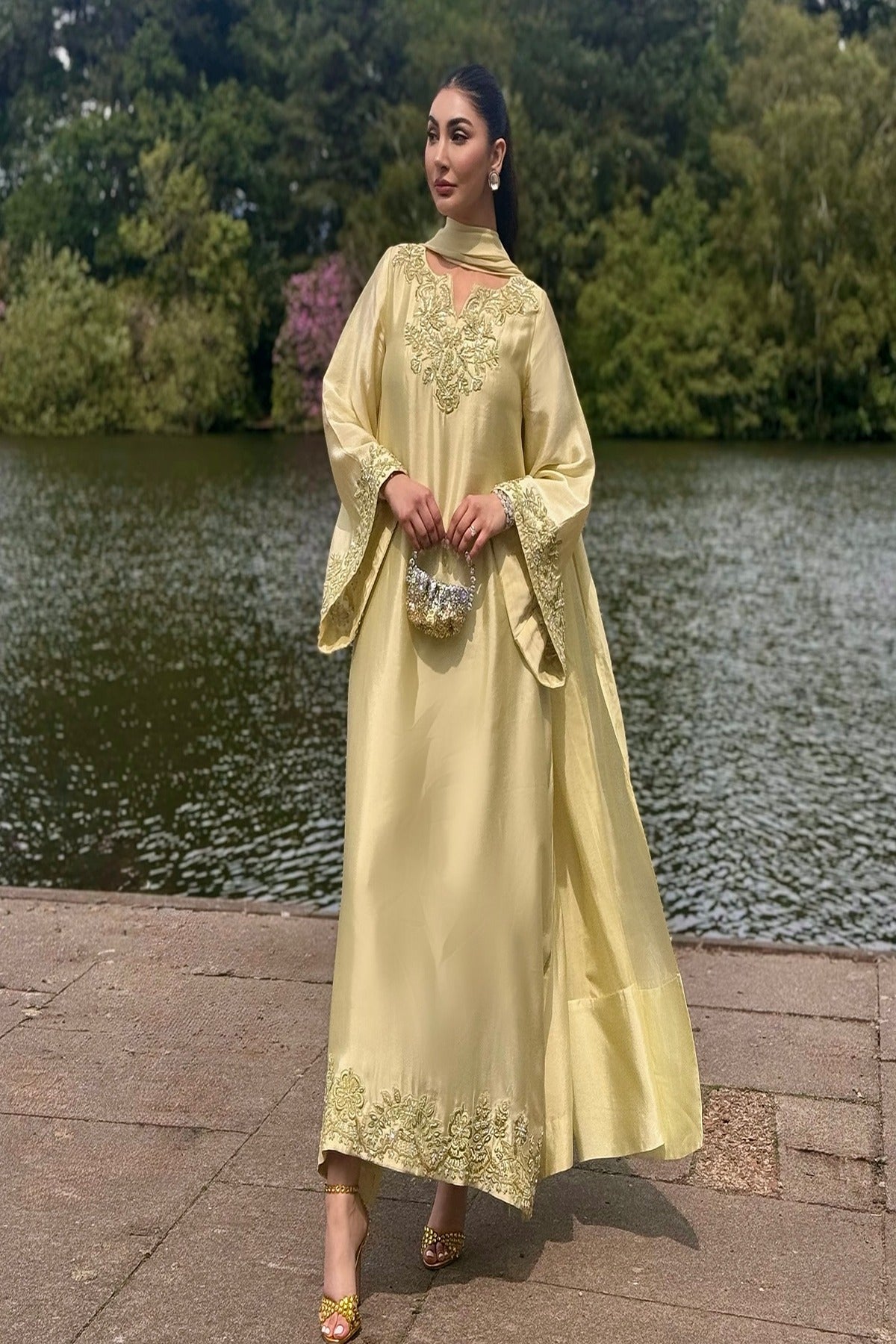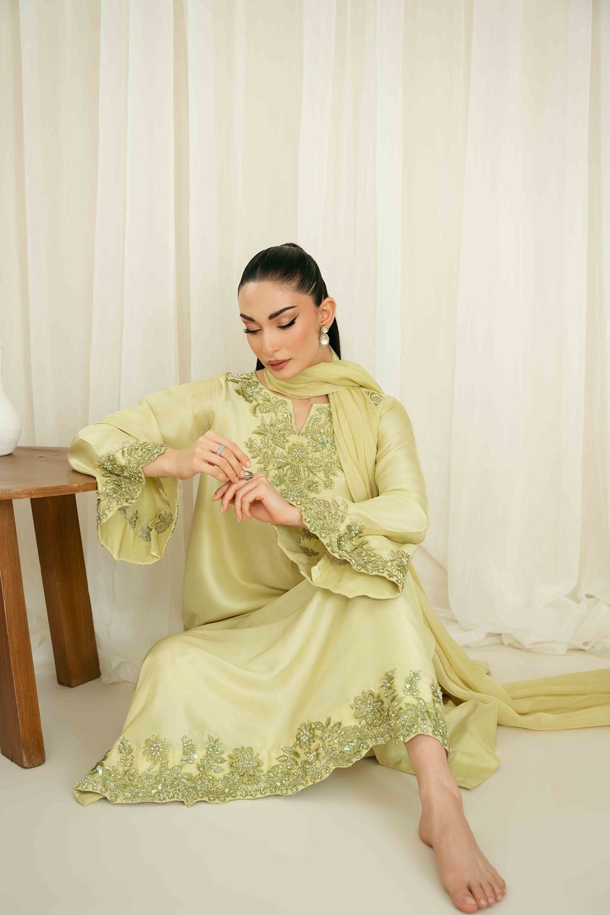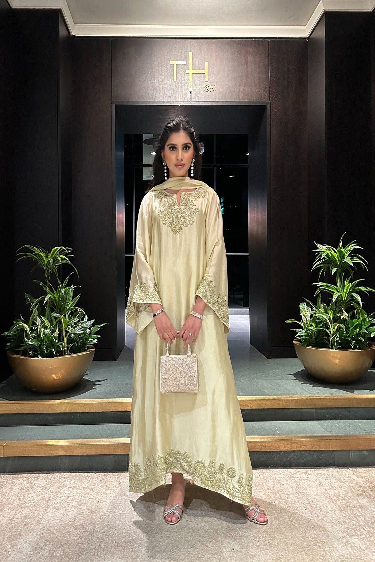 Hand embroidered base with embellishment of crystals, Katdana and sequins in monotones.