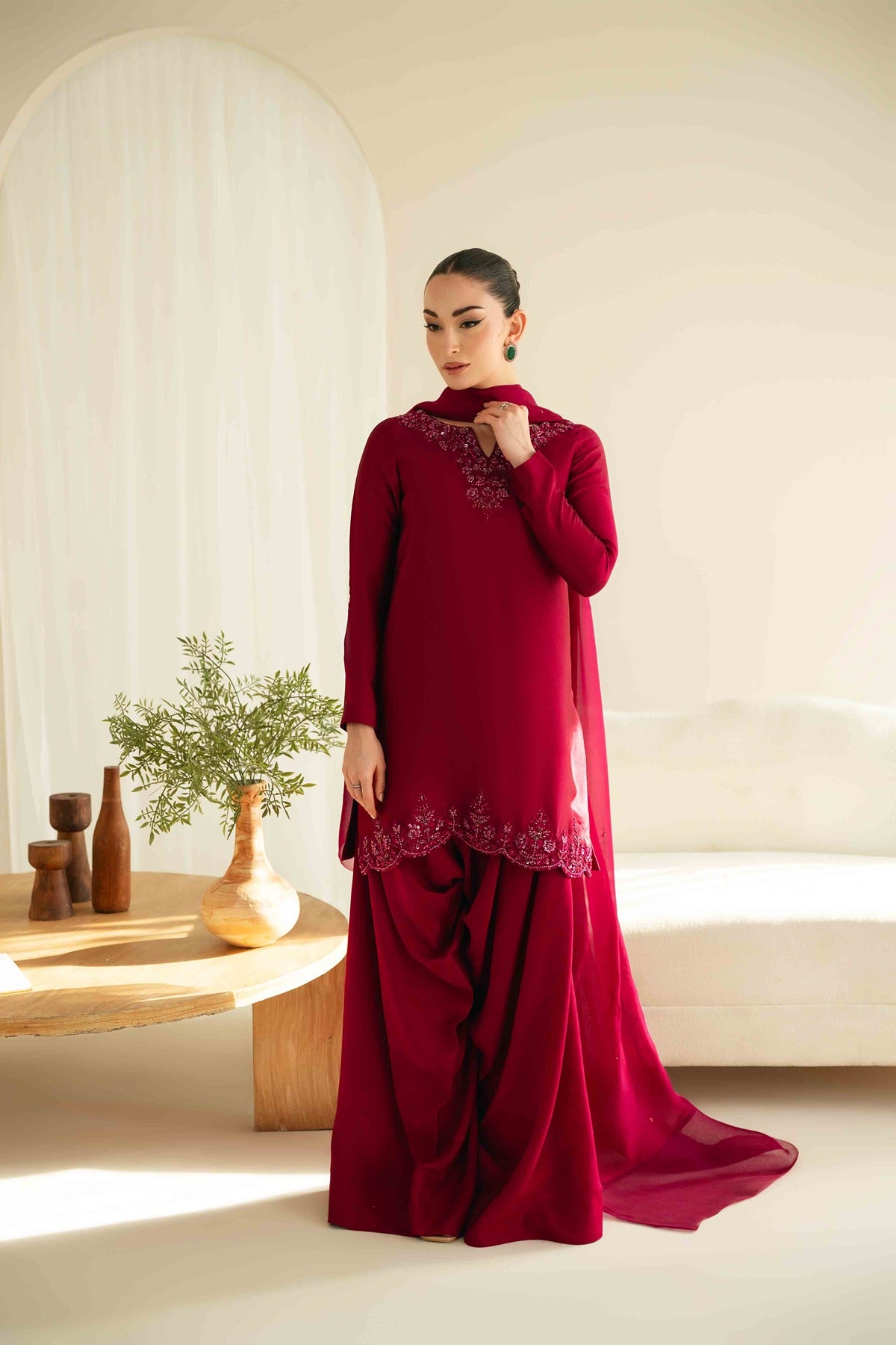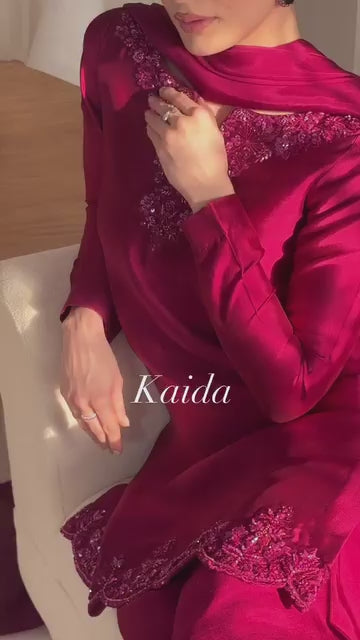 Hand embroidered base with embellishment of crystals, Katdana and sequins in monotones.