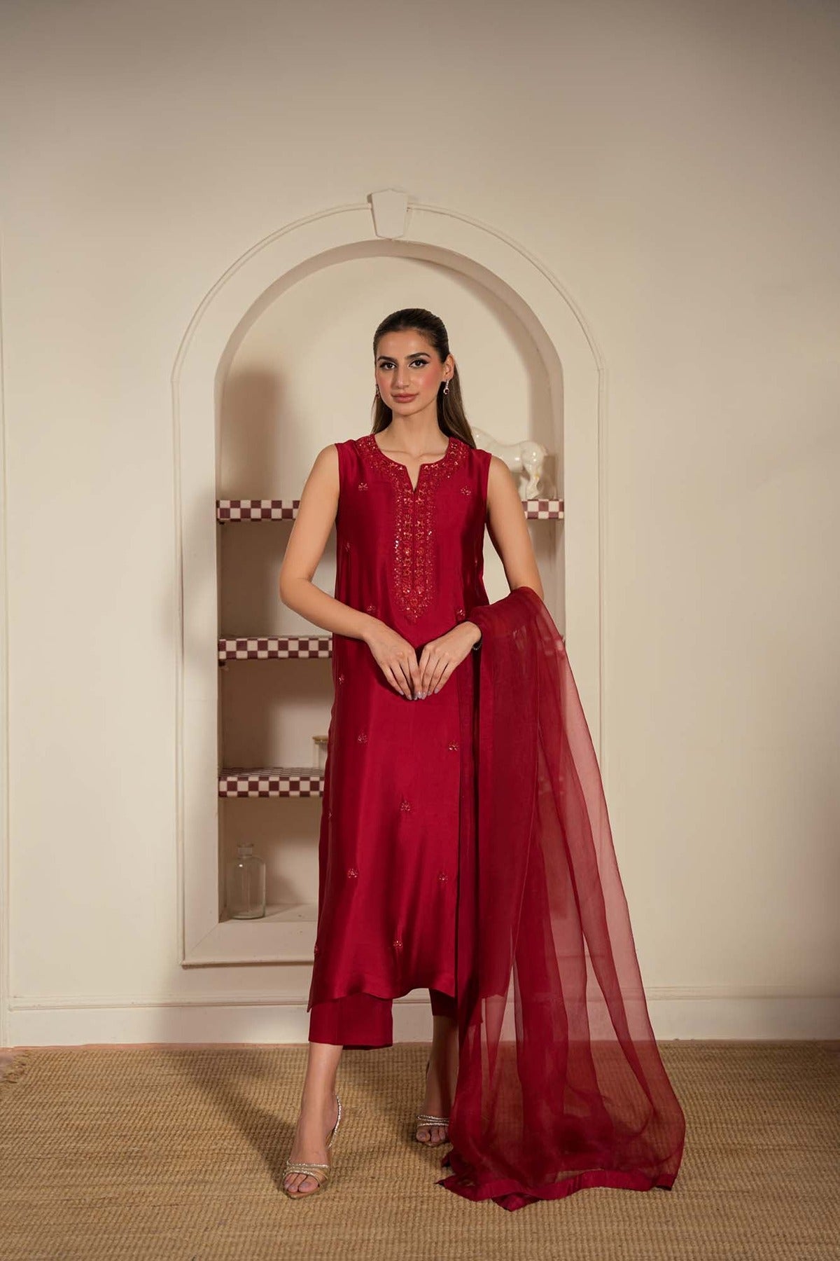 - Duppata: Pure Organza with silk borders