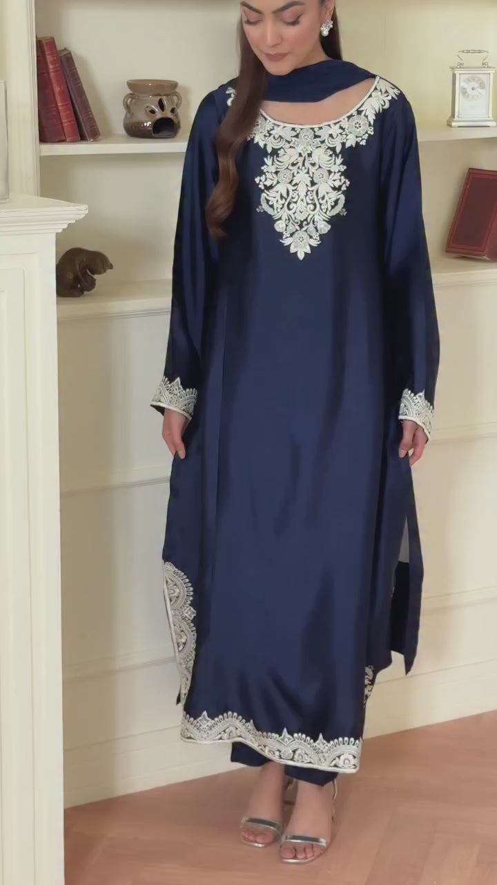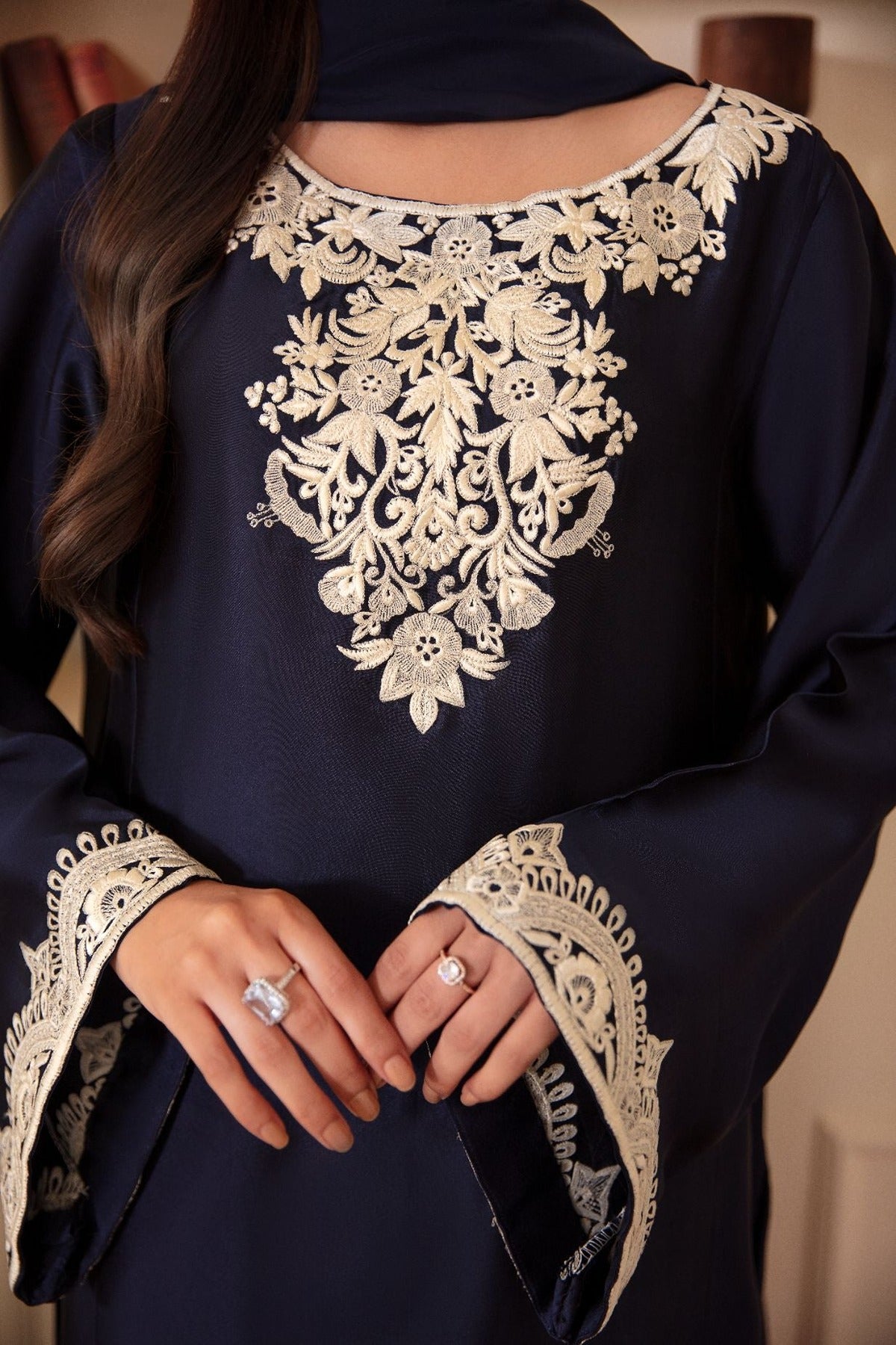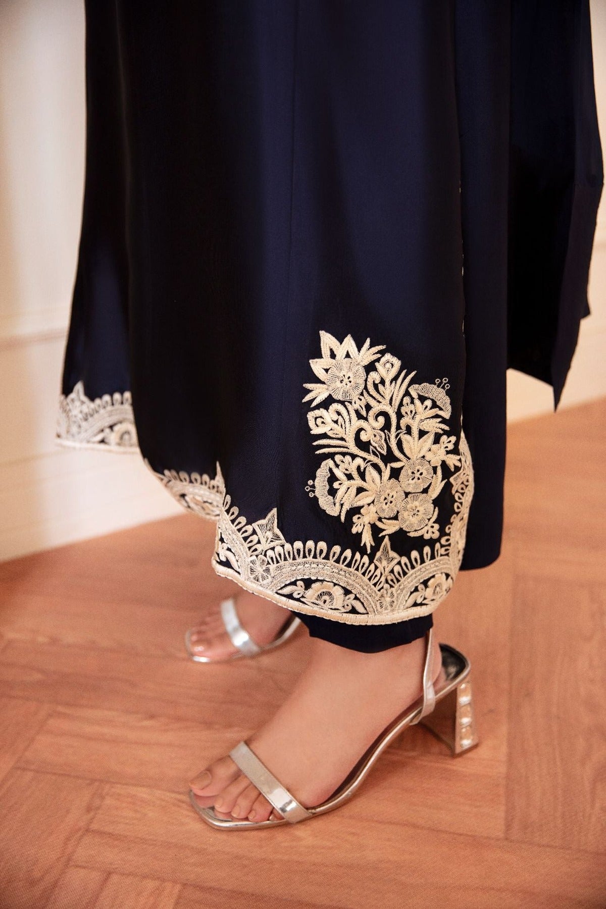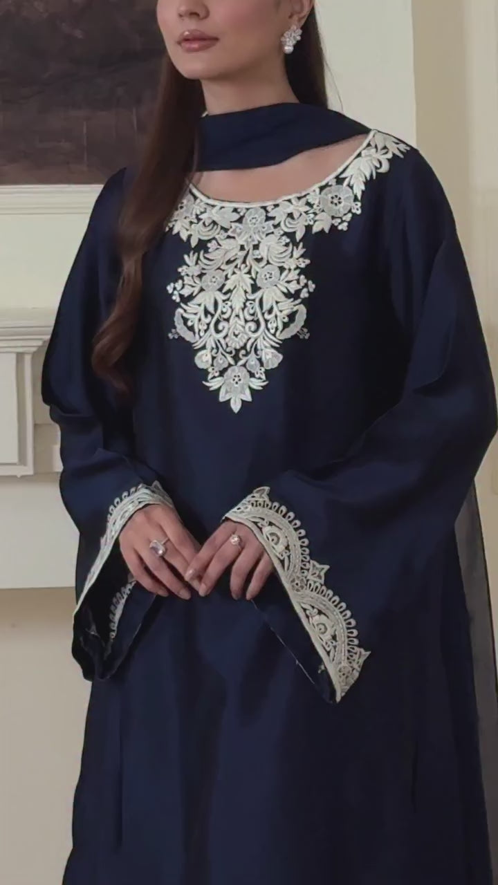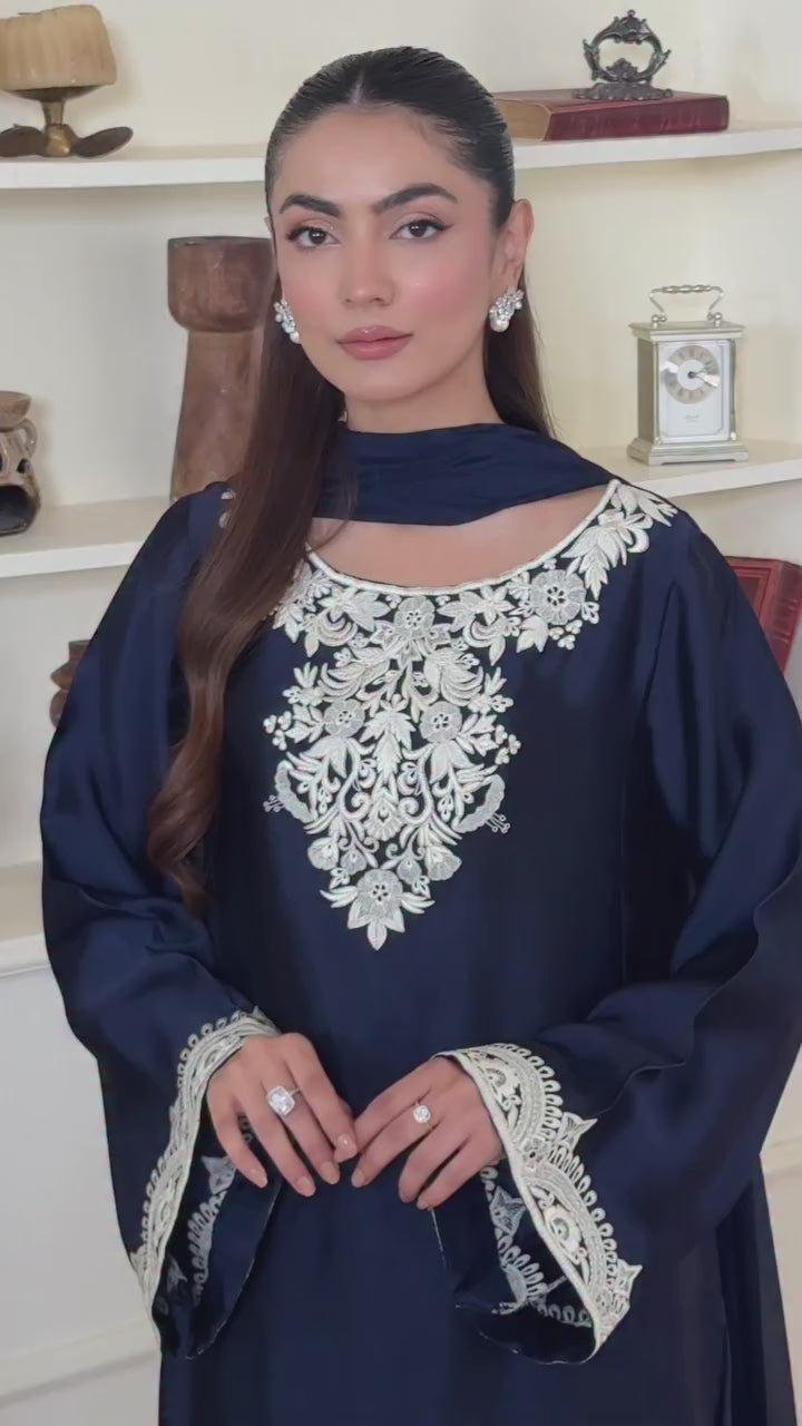 Intricately embroidered base with the elegance of pure sheesha silk and graceful silhouette.