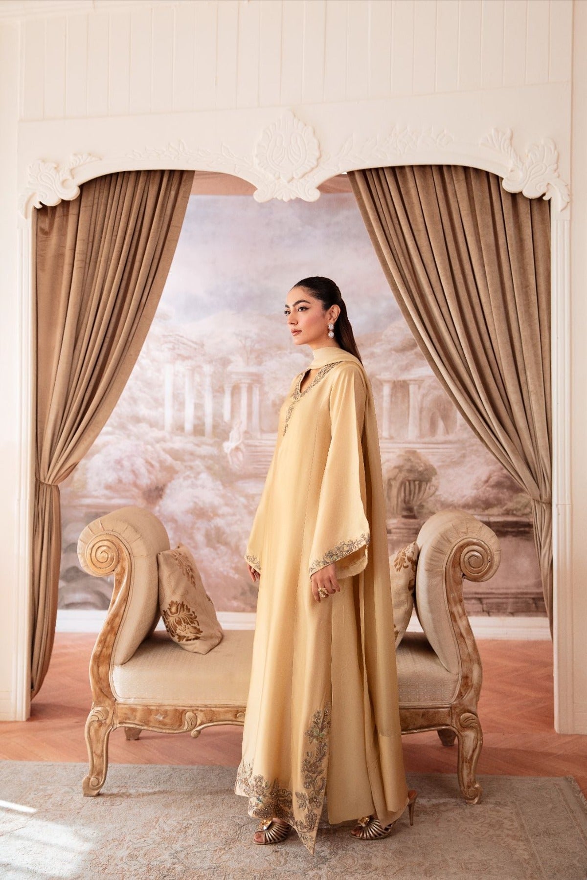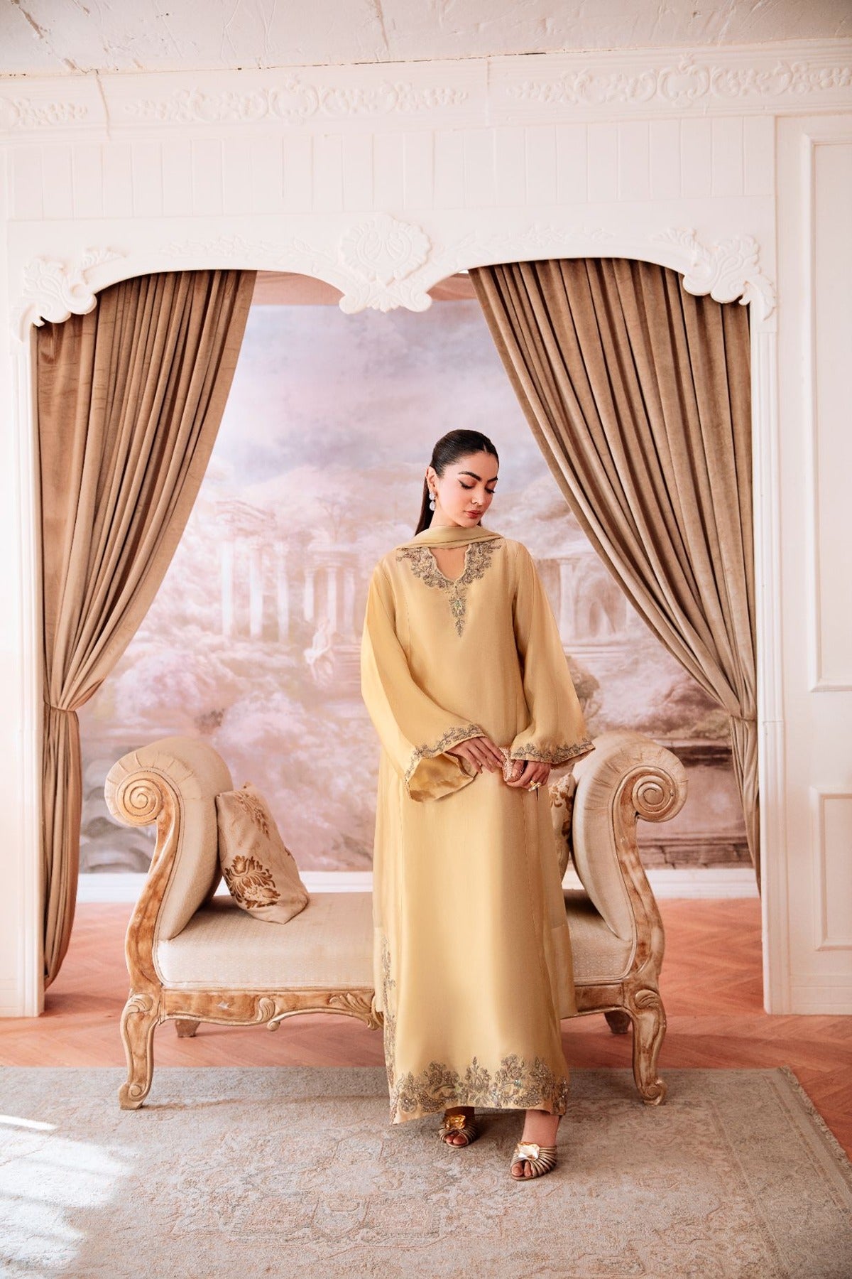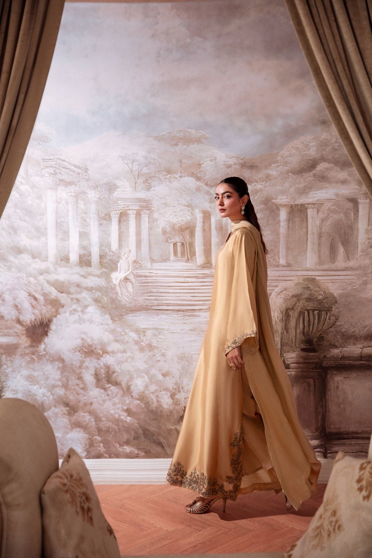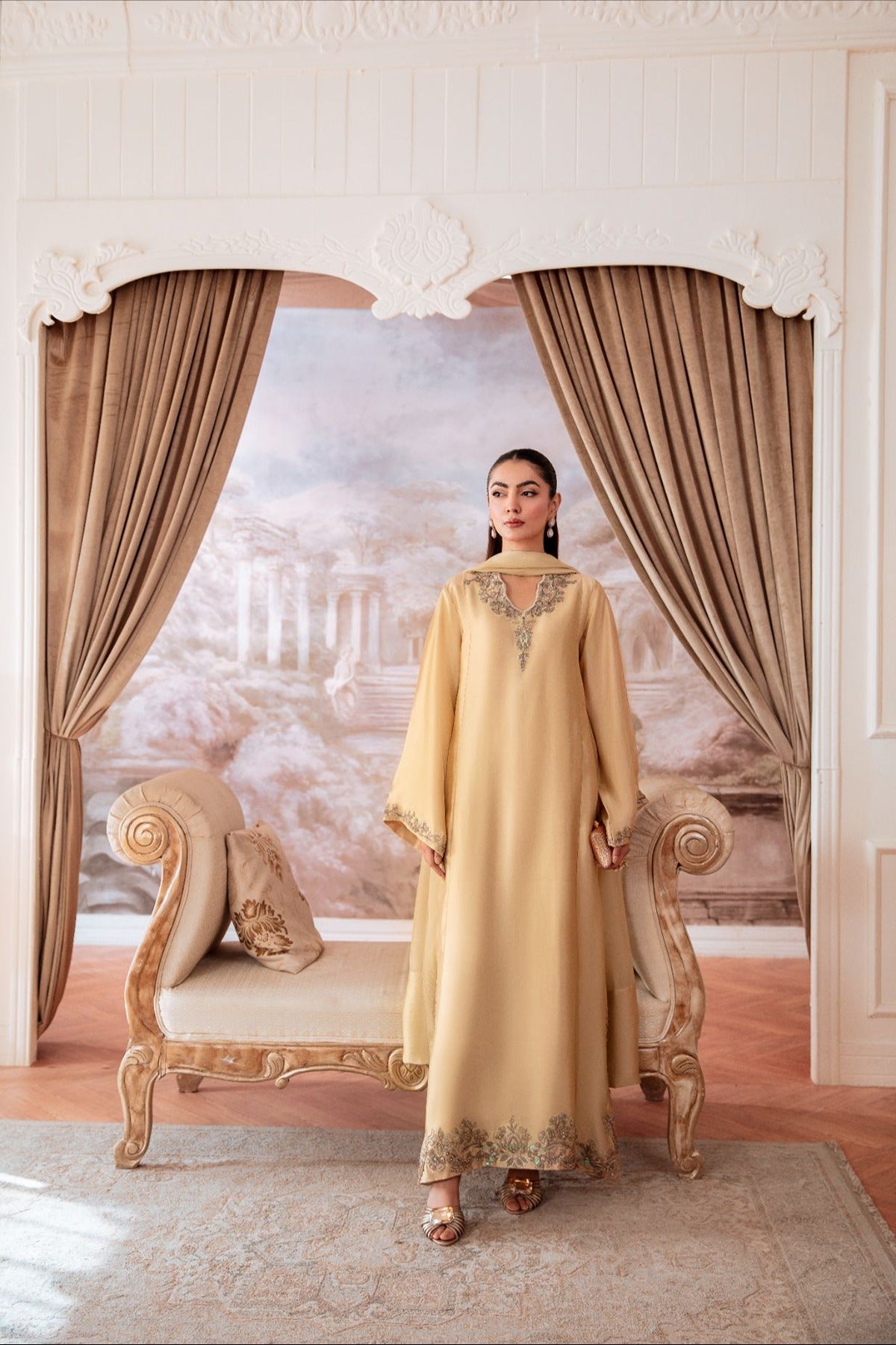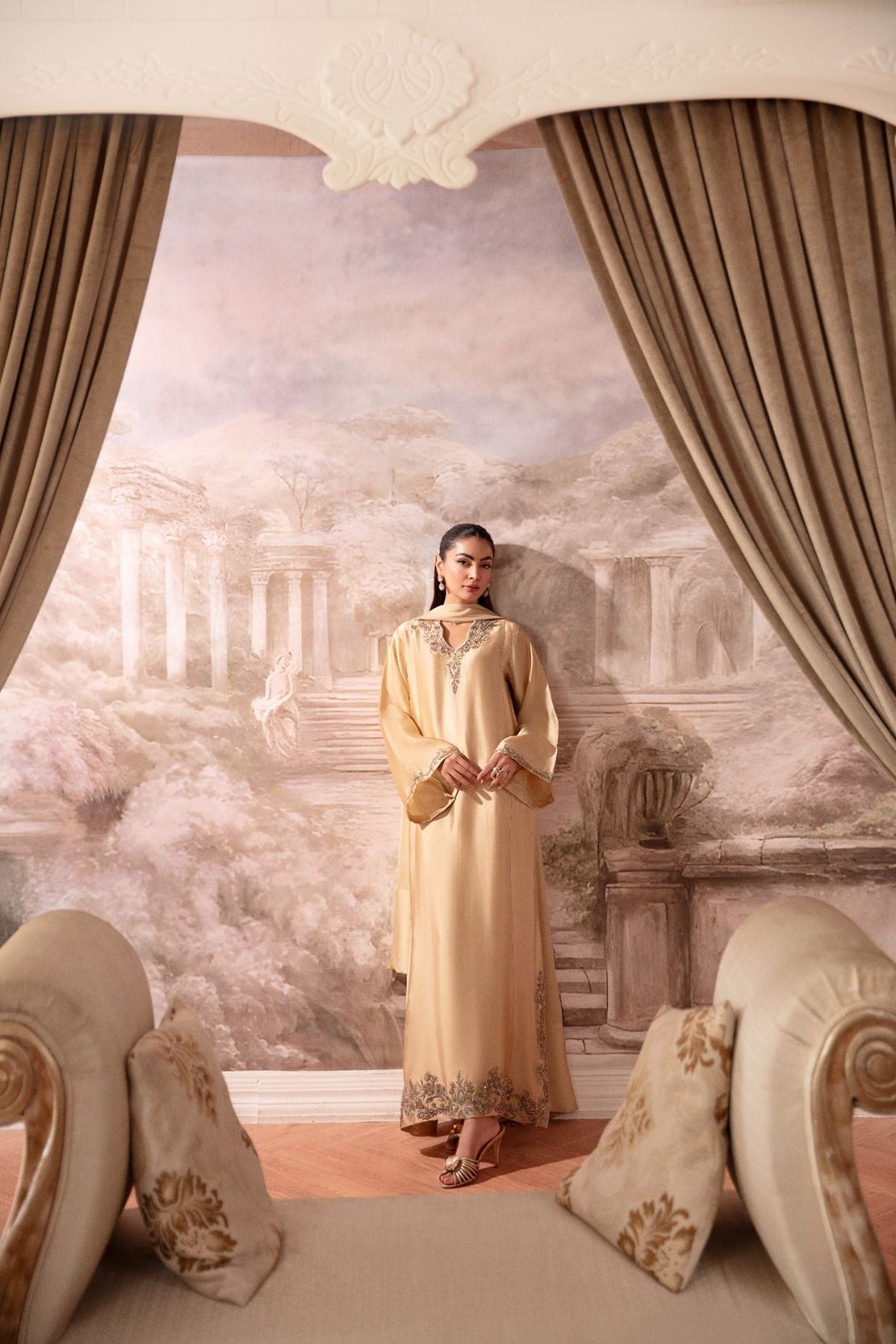 Hand embroidered base with embellishment of crystals, Katdana and sequins in monotones of Base color.