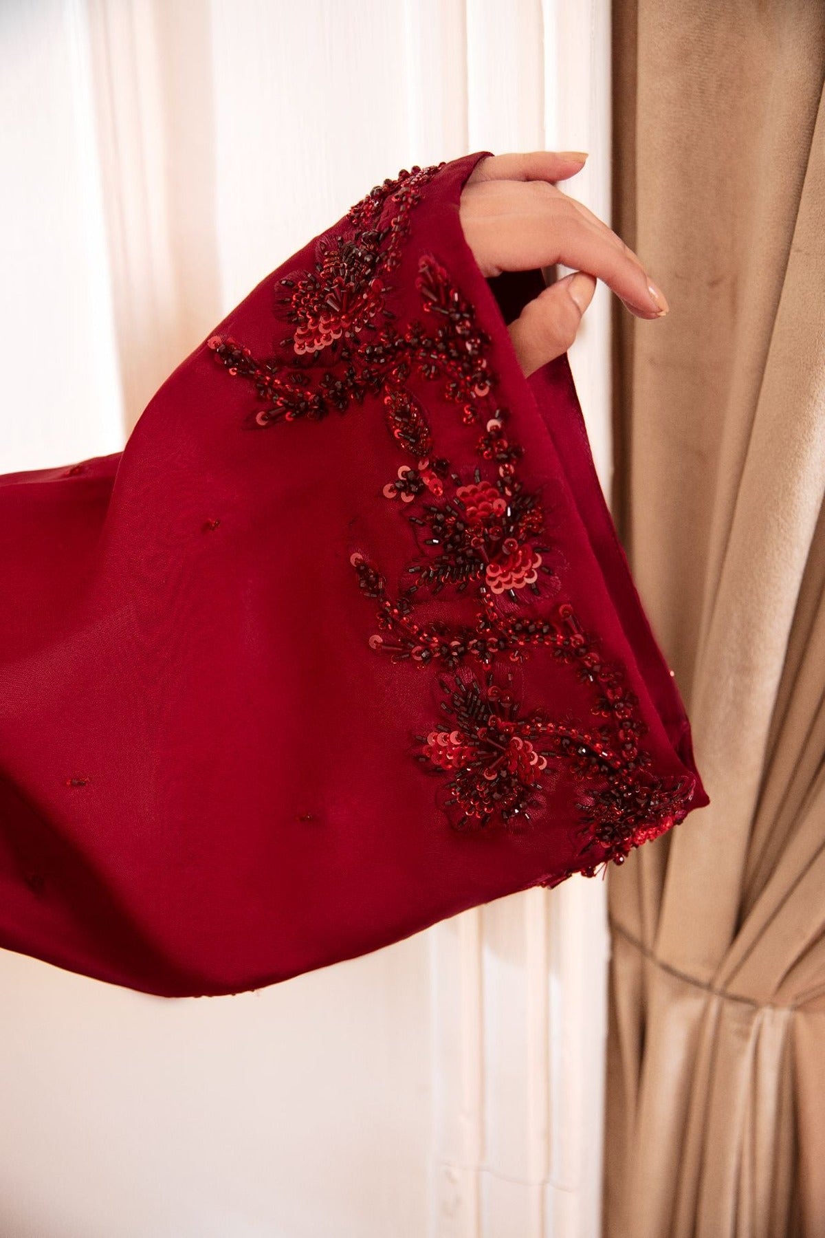 Hand embroidered base with embellishment of crystals, Katdana and sequins in monotones of Base color.