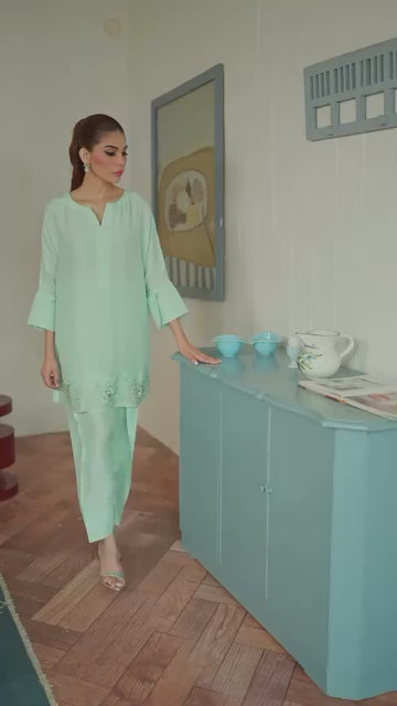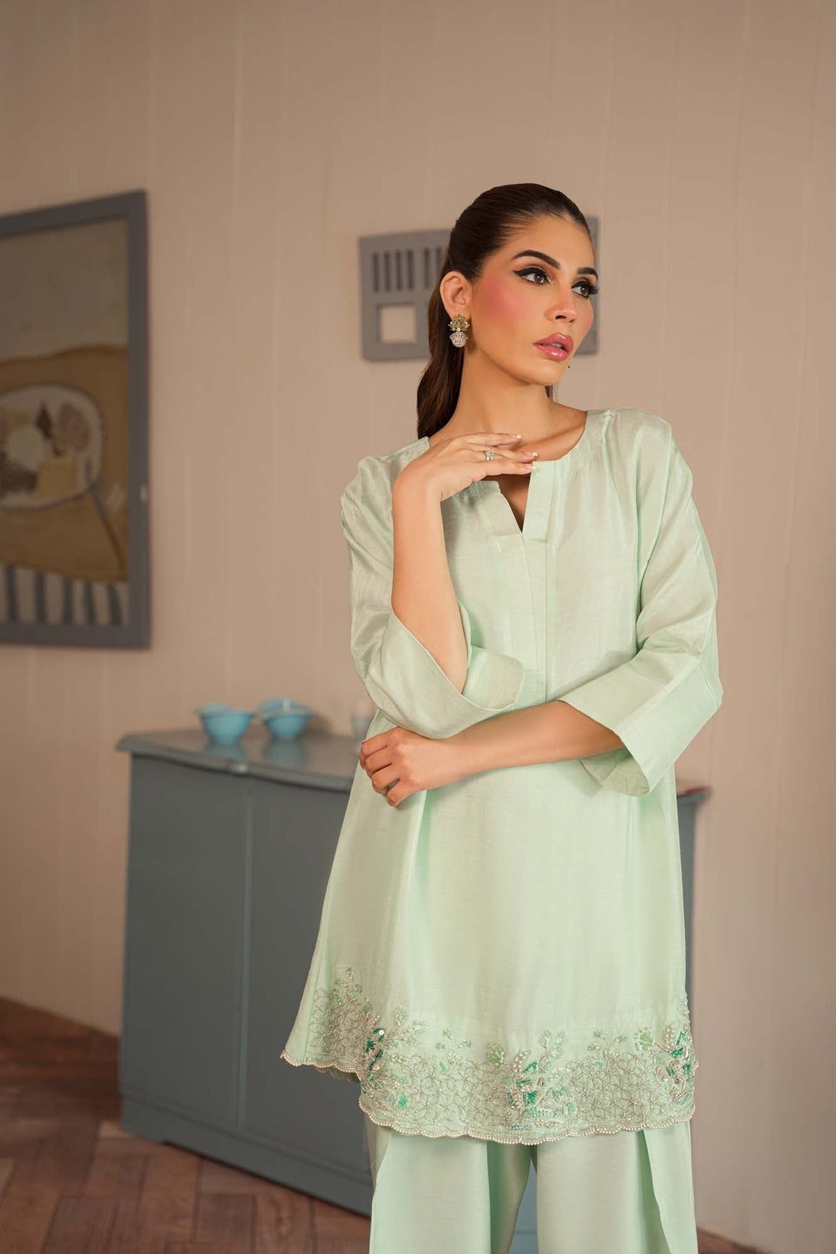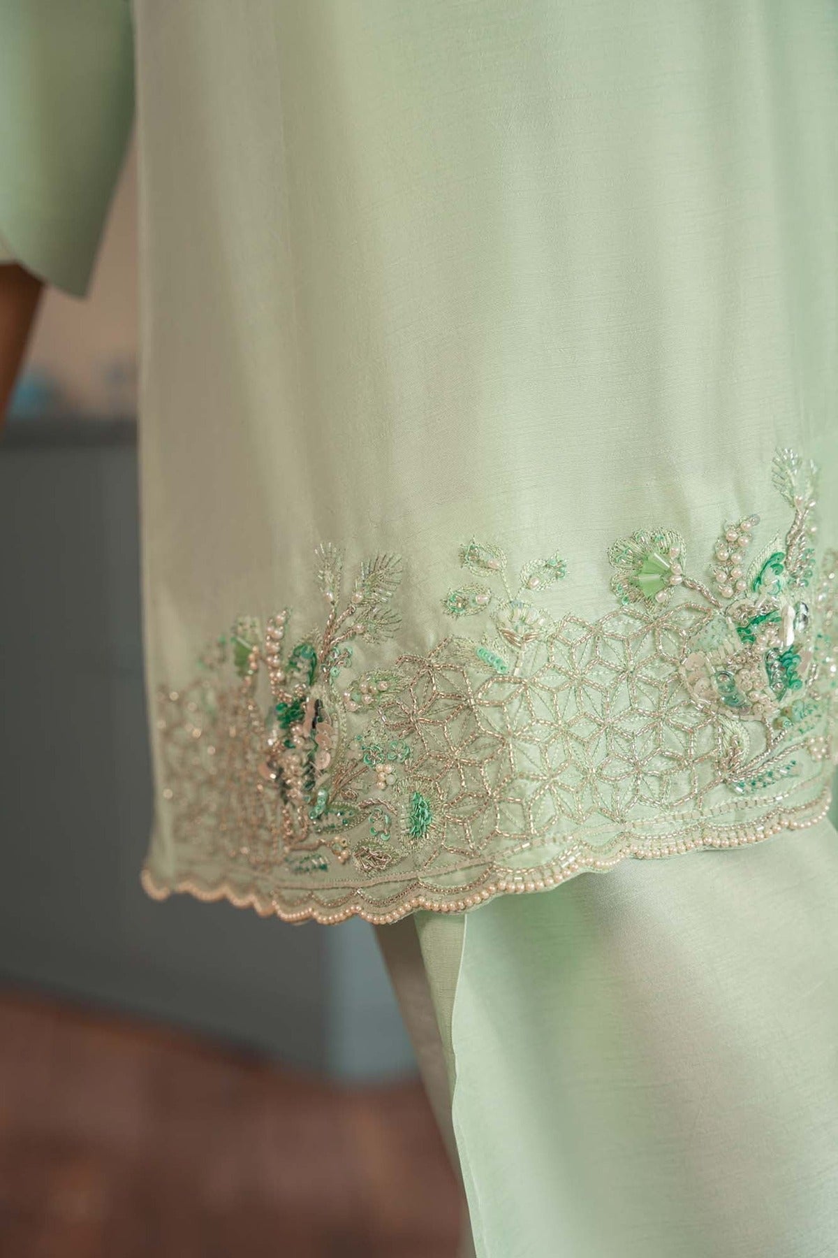 Embellishment: Purely Hand crafted embellishment of pearls, sequins, crystals and katdana, dabka on the shirt’s hem.