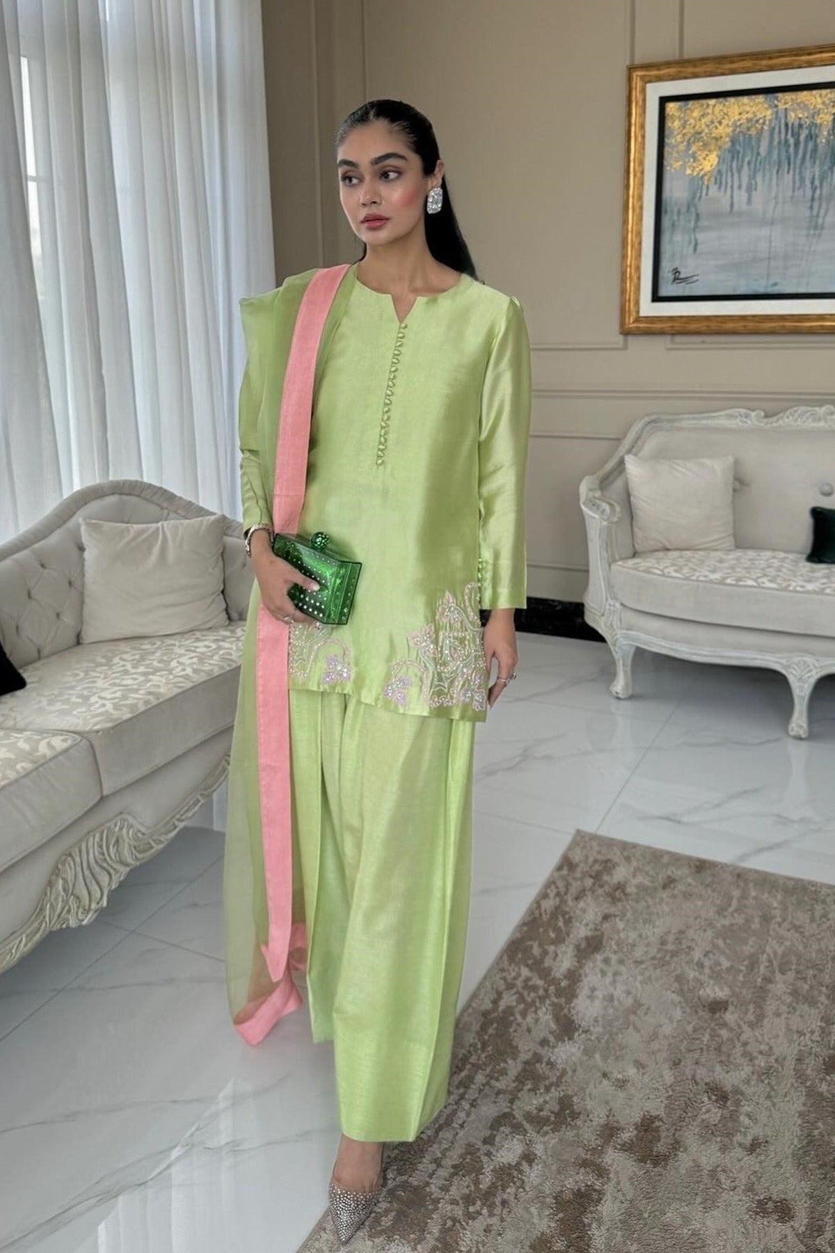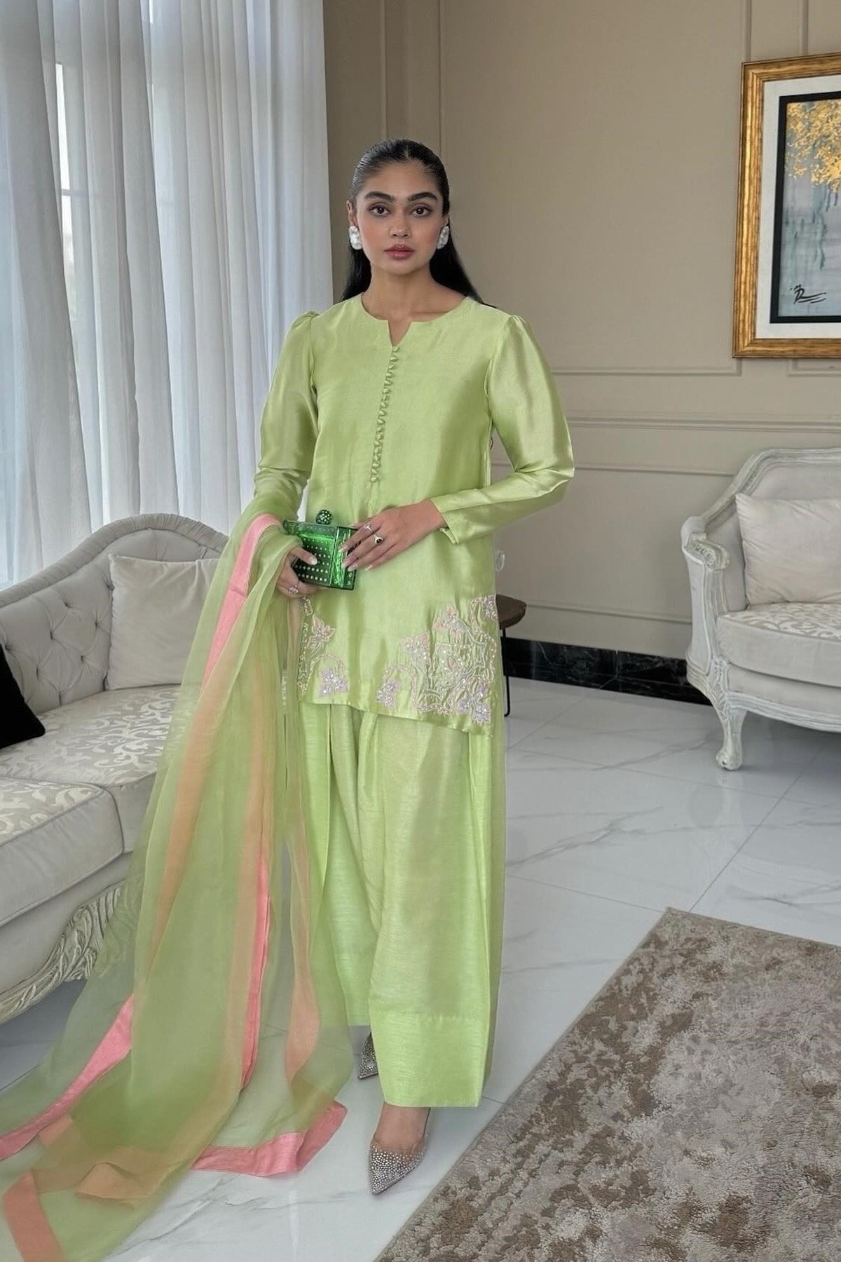 - Duppata: Pure Organza with silk borders