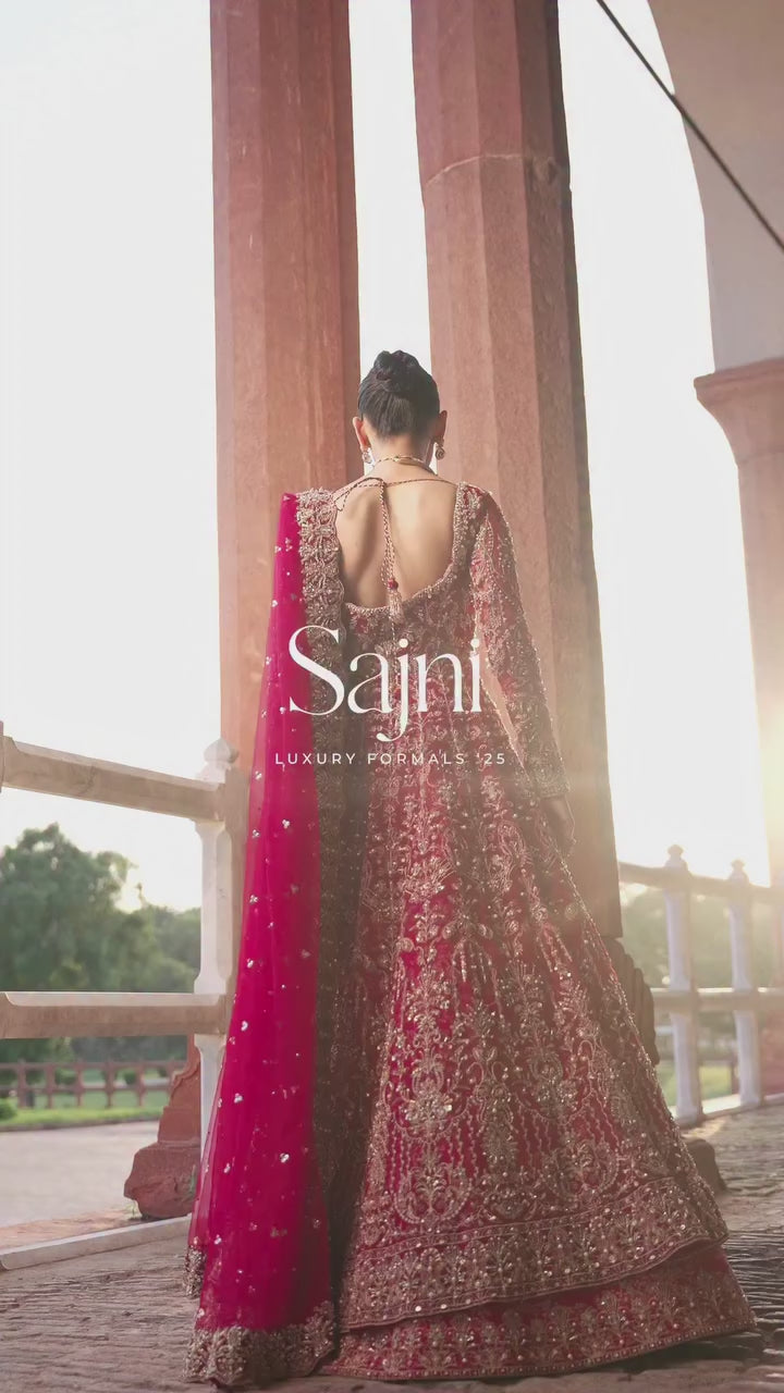 Shine bright with this striking red pishwas, a masterpiece of timeless grandeur. Crafted from delicate net fabric, the pishwas is lavishly adorned with intricate hand embellishment that exudes regal sophistication. It is paired with a beautifully screen-printed Korean silk lehenga, designed in a graceful long silhouette that enhances the outfit’s elegance. The look is perfected with a matching net dupatta, exquisitely detailed with handwork and delicate embellishments, creating a truly majestic finish ideal for weddings and grand celebrations.