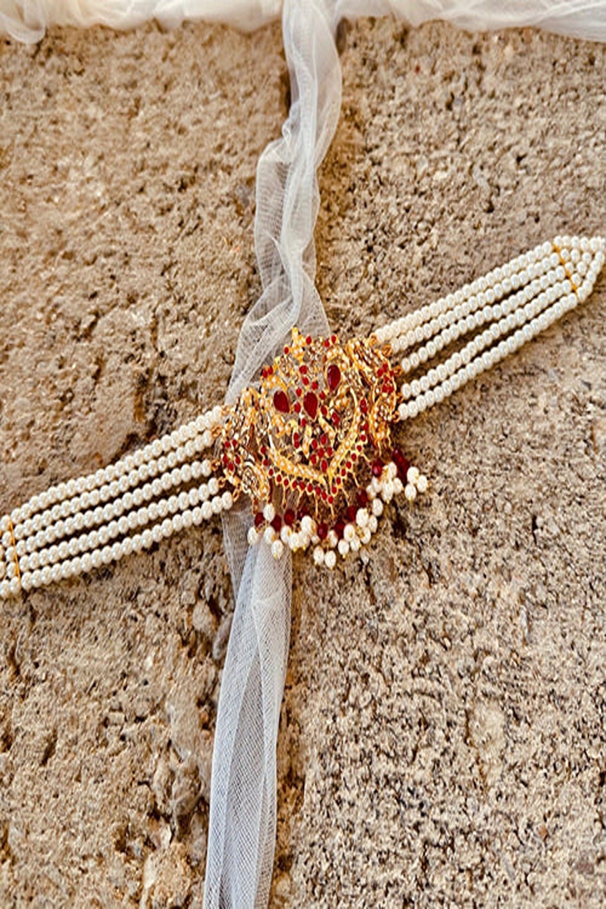 A regal masterpiece inspired by the grandeur of the Nizami era, the Jahanara Ruby Choker exudes timeless elegance. Adorned with deep ruby-red accents, this exquisite piece is designed to make a statement. Whether paired with a traditional ensemble or a modern look, its rich hues and intricate detailing ensure a touch of royal sophistication at every occasion.