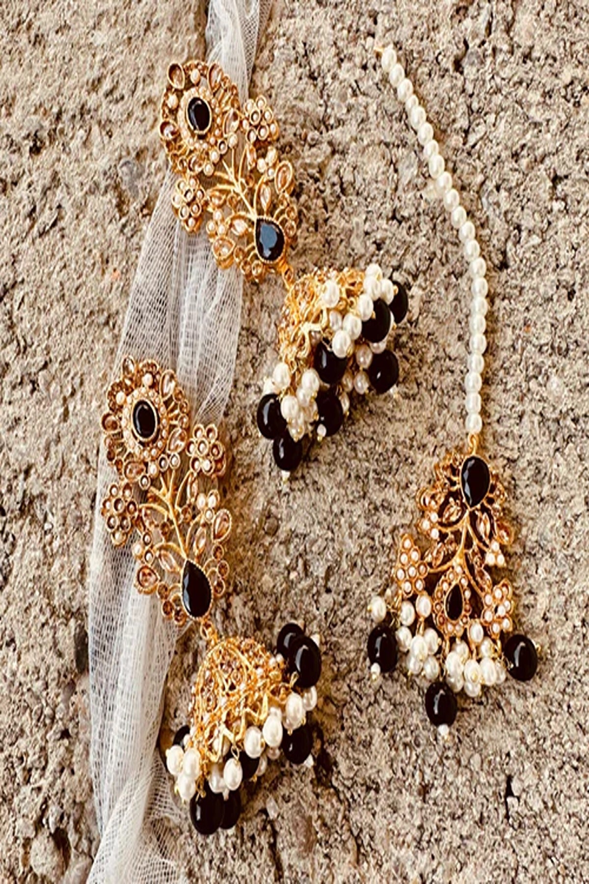 Bold, timeless, and effortlessly elegant, the Mehr Black Choker Set is a statement of sophistication. Designed with a sleek black choker, matching jhumki earrings, and a tikka, this set is perfect for evening wear, formal occasions, and adding a regal touch to your look.
