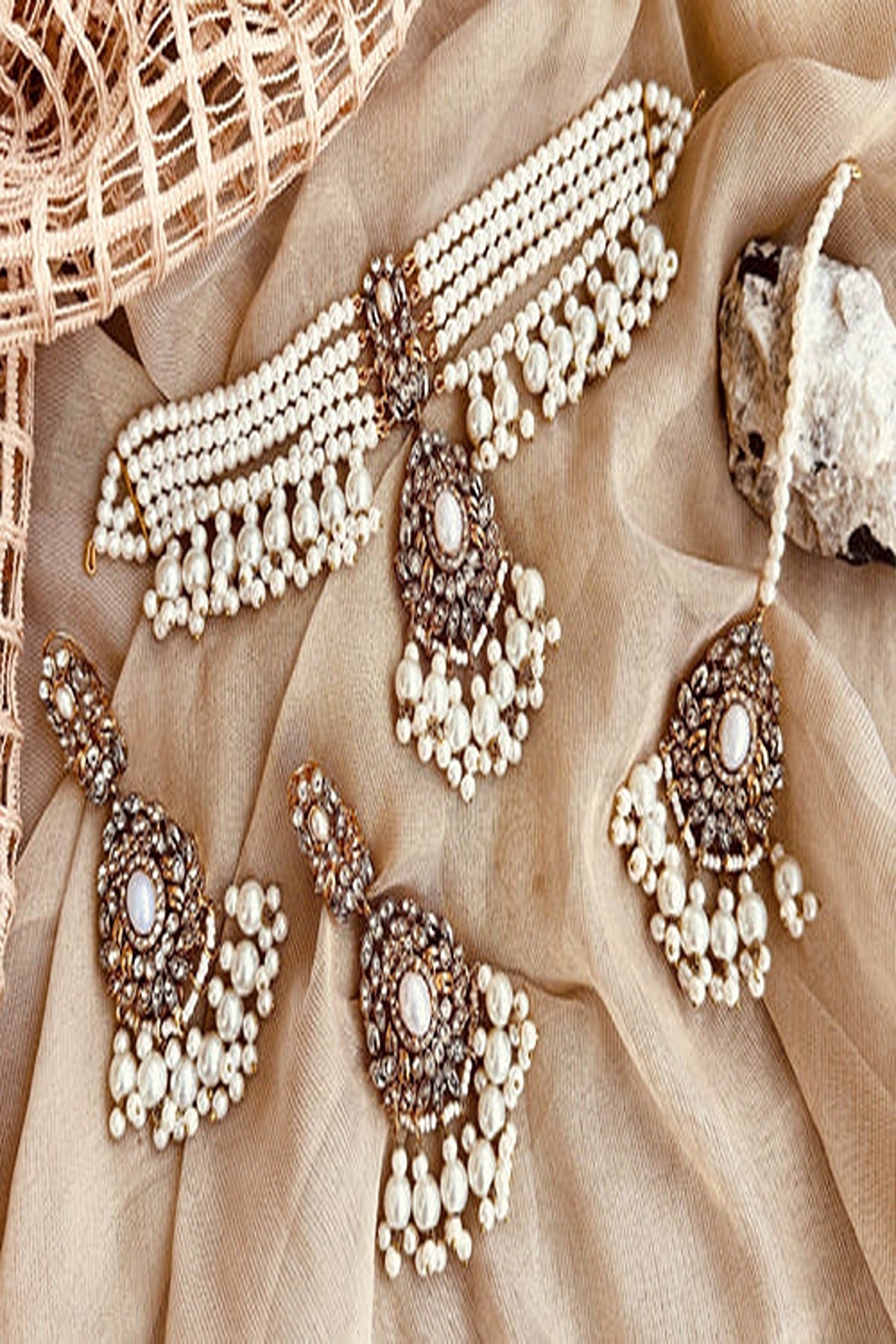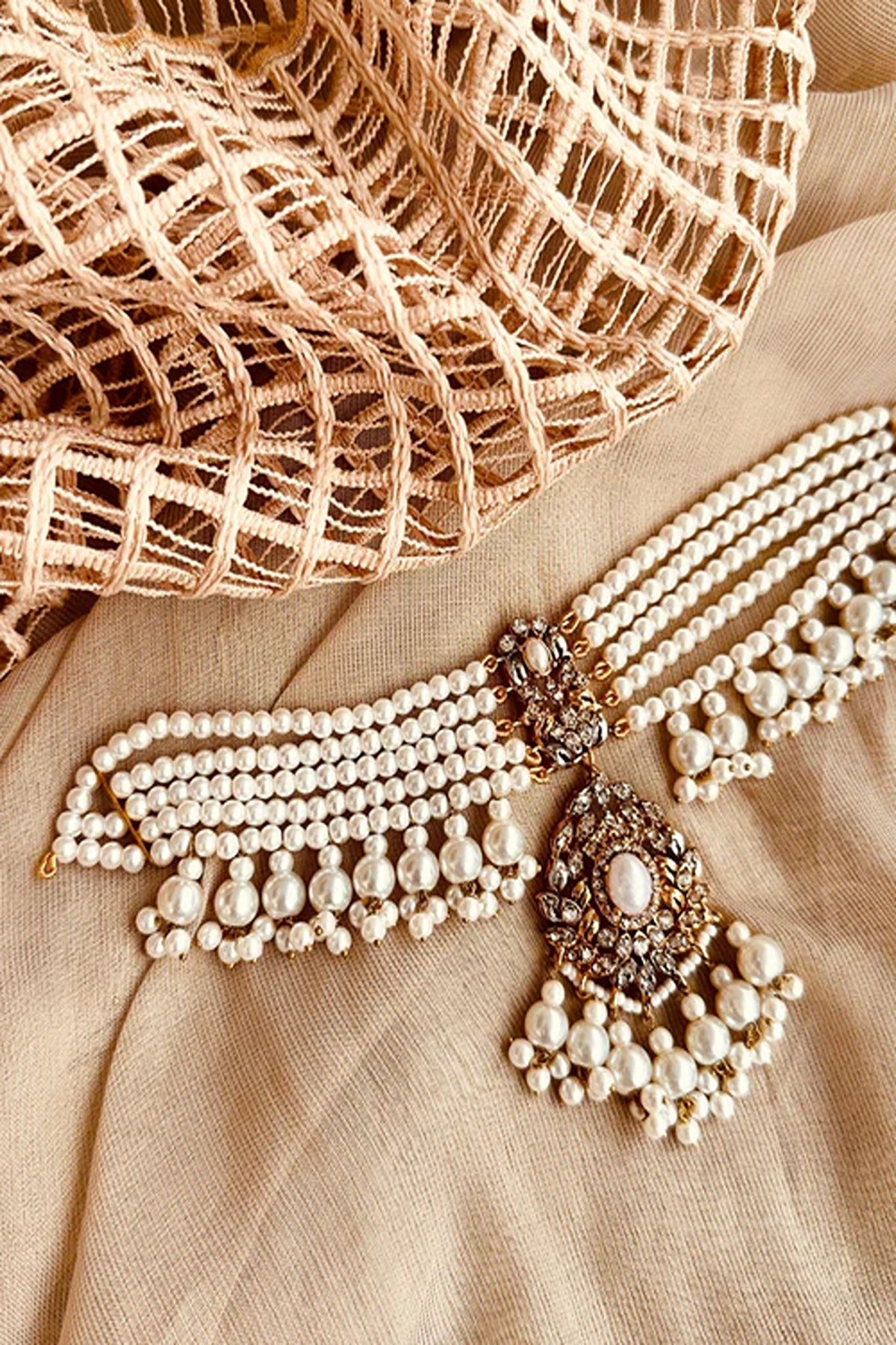 A timeless classic. The white variant of our Rhea choker exudes elegance with icy tones that complement both Eastern and Western outfits. Perfect for nikkah brides or all-white soirées.