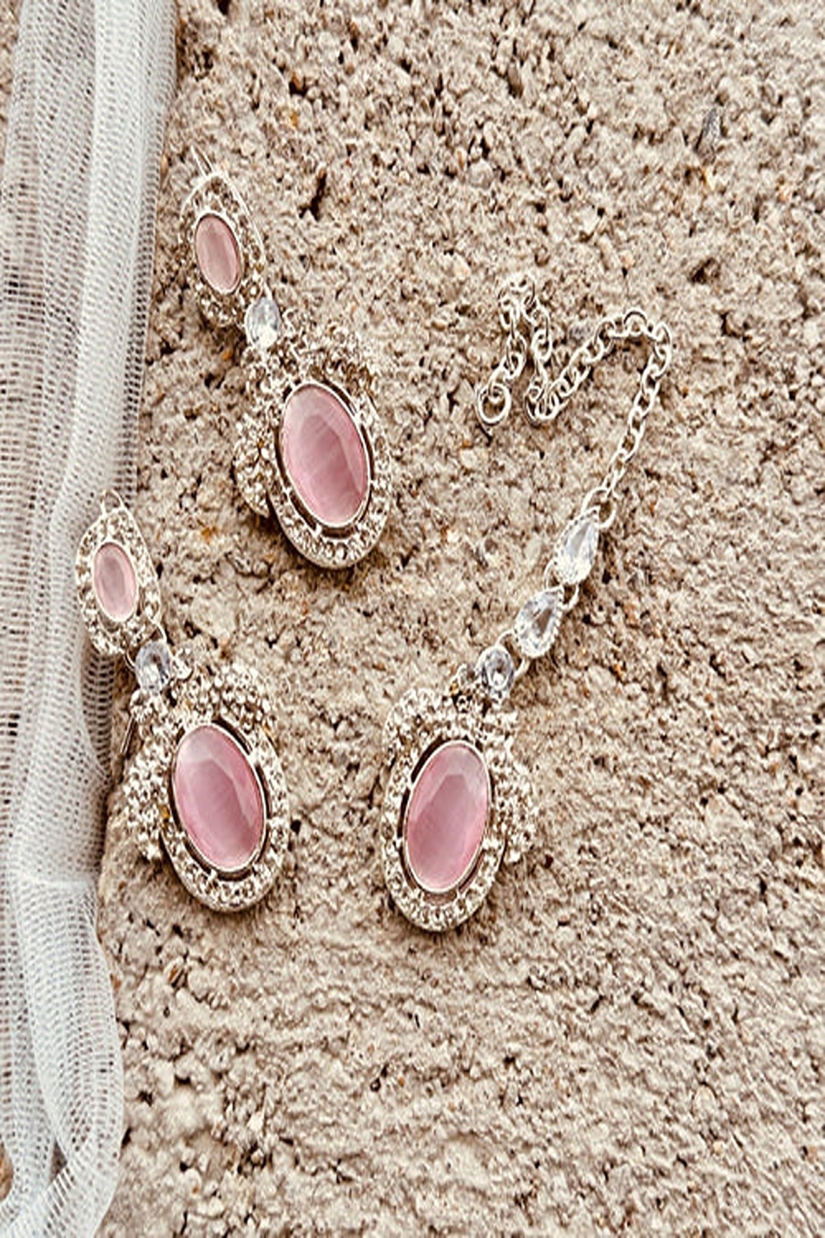 KOH-E-GEM | JEWELLERY | URBAN GLOW NECKLACE SET – PINK SILVER