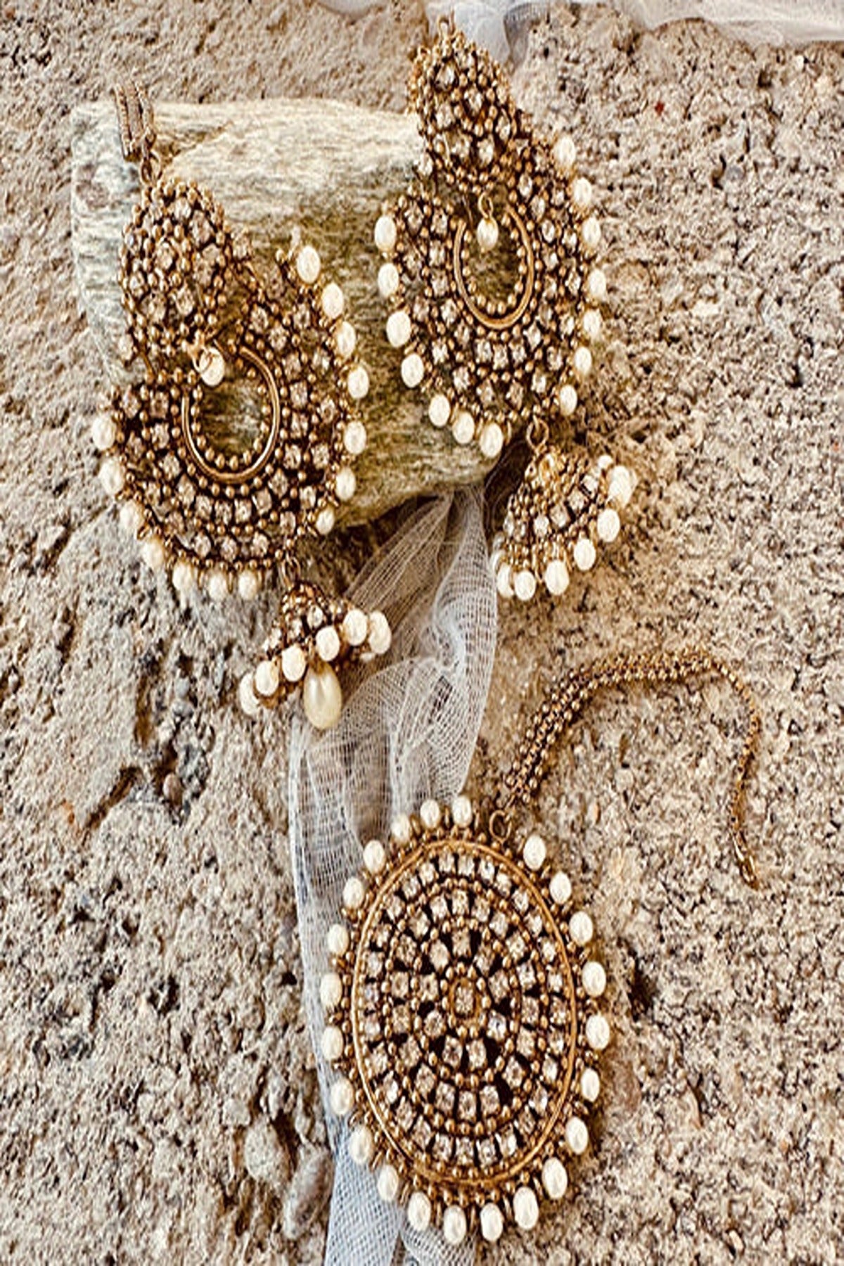 A tribute to timeless beauty, Zewar-e-Aroos is an exquisite antique necklace set crafted for those who appreciate heritage and elegance. Featuring a regal necklace, matching earrings, and a delicate Tikka, this masterpiece embodies vintage charm with intricate detailing and a luxurious finish. Perfect for brides and special occasions, its heirloom-inspired design ensures you shine with grace and grandeur, making every moment truly royal.