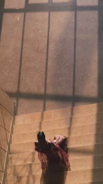 Sassy is the perfect embodiment of modern sophistication blended with intricate artistry. The ensemble features a long, straight-cut silk tissue shirt, meticulously embroidered with traditional techniques like dabka, kora tilla, and delicate crystals. These embellishments create a luxurious texture and a stunning visual effect, while the refined details along the neckline and borders exude an air of elegance and grace.