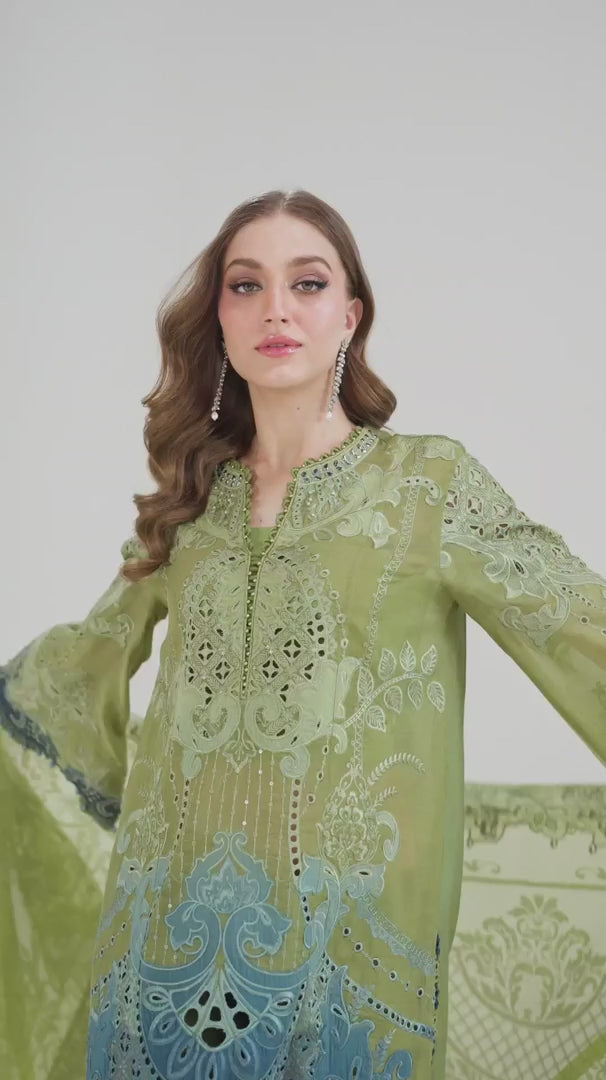 - Embroidered Paper Cotton Side Panel Left With Printed Lawn Applique