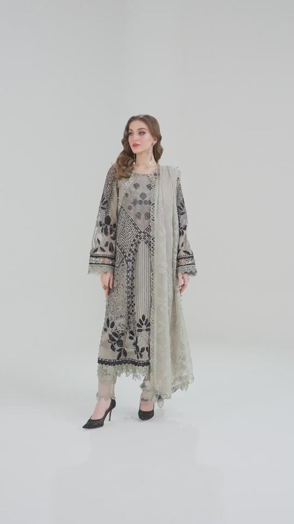 Embroidered Organza Side Panel Patch Right With 3D Flowers