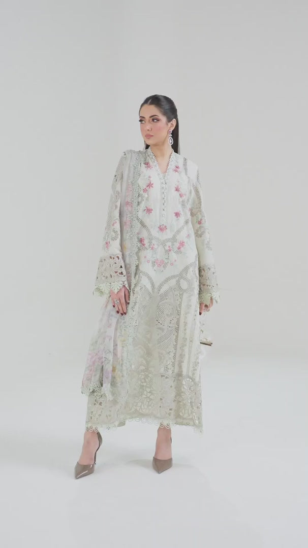 Embroidered Lawn Neck Left With Ribbon Flowers