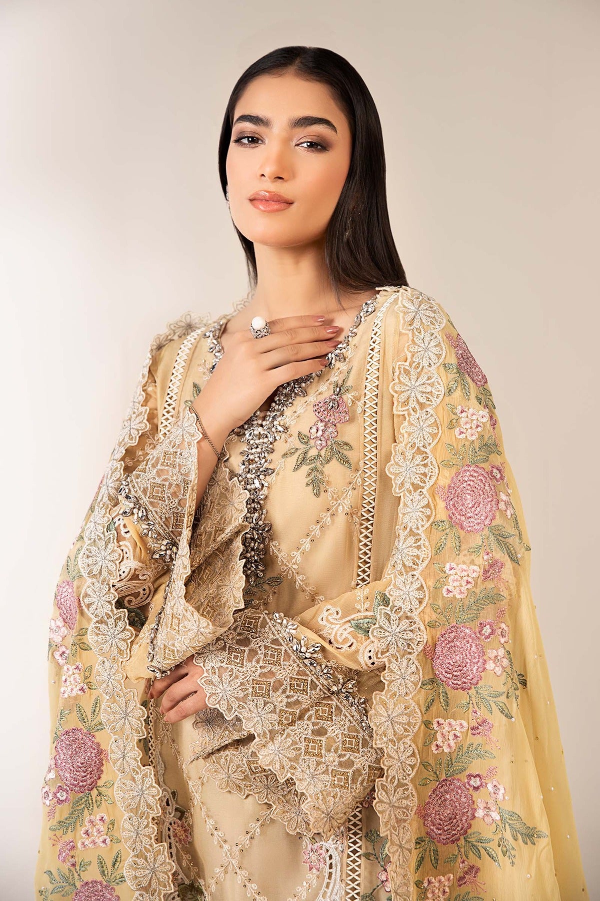 MARIA B | LUXURY FORMALS | 3 PIECE EMBROIDERED CHIFFON SUIT | SF-EF25-41-YELLOW