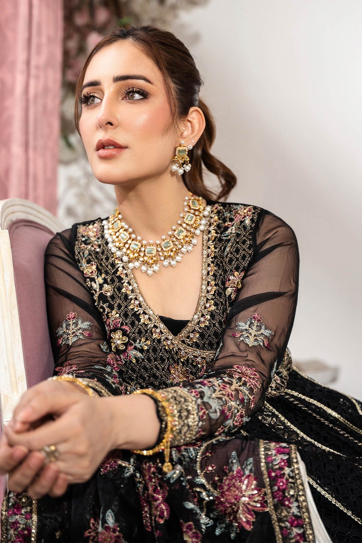 MARIA B | LUXURY FORMALS | 3 PIECE EMBROIDERED ORGANZA SUIT | SF-EA25-01-BLACK