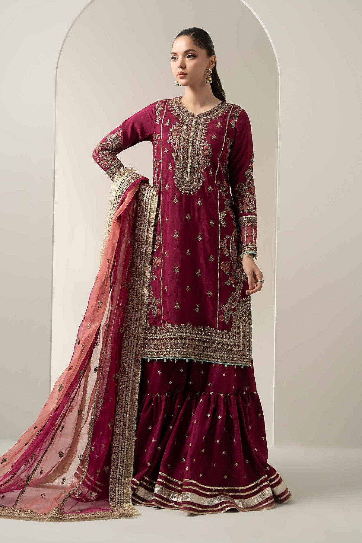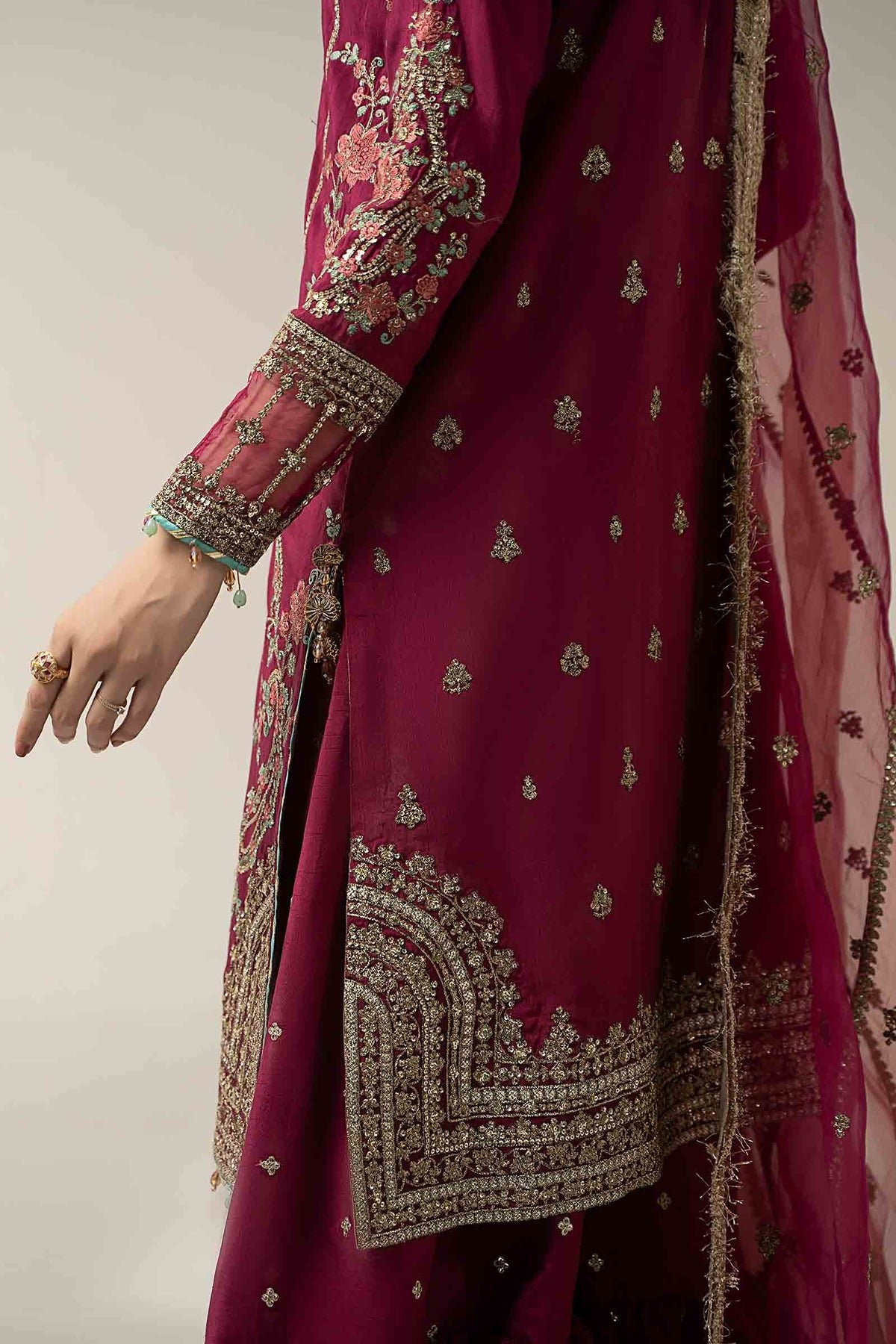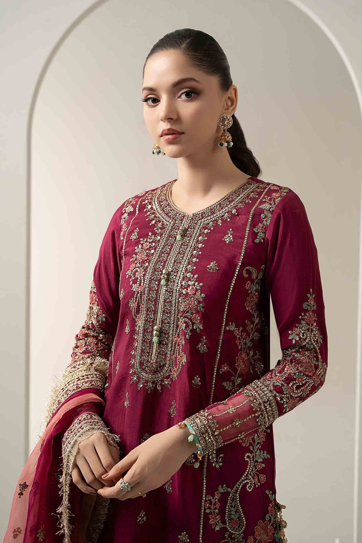MARIA B | LUXURY FORMALS | 3 PIECE EMBROIDERED RAW SILK SUIT | SF-EA25-02-PINK